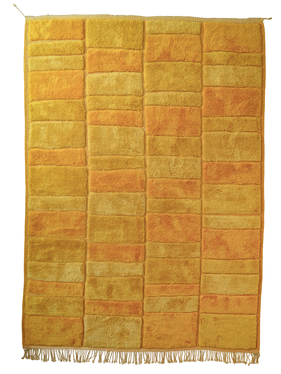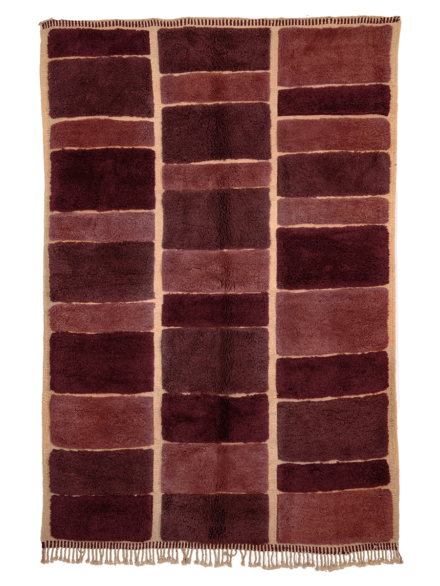 The rugs are the culmination of thousands of woolen knots irregularly woven together by 25 Amazigh artisans in a village just outside of Beni M’rirt in Morocco’s Middle Atlas Mountains.