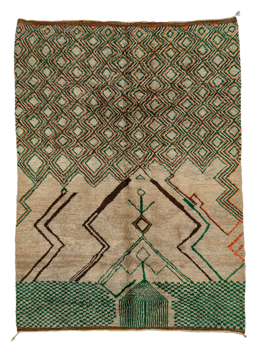 The majority of these rugs come from the Middle Atlas and High Atlas Mountains. The local sheep in these colder climates have a thicker coat to sustain them during the winter months, which impacts the thickness of the wool, and in turn, contributes to the height of the pile.