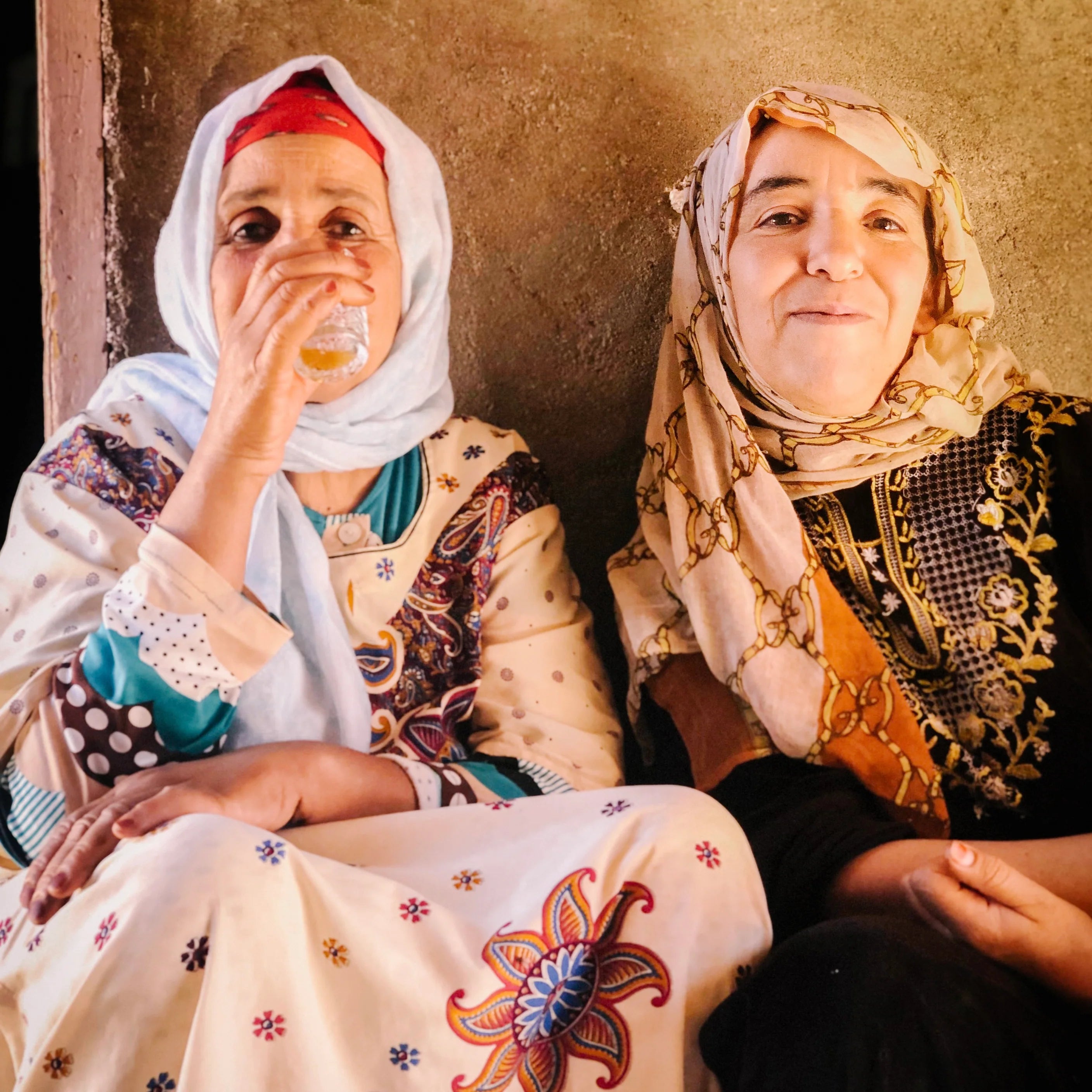 Mbarka and Khadija were the first artisans we ever worked with and through the years they have become our extended family. Residing just outside the old Village of Tazenakht, this mother-daughter duo has been weaving together for decades. They both specialize in the intricate hanbel technique and, depending on how big the rug is, they will enlist the help of their neighbors, cousins, or siblings to help complete the piece.