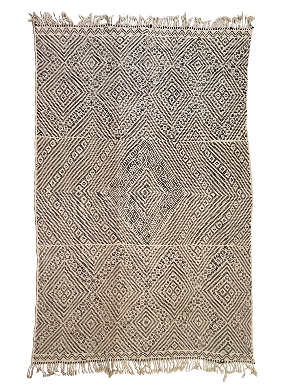 The Kilim technique originates from Tifelt, a northern Moroccan town renowned for its rich Amazigh weaving traditions.