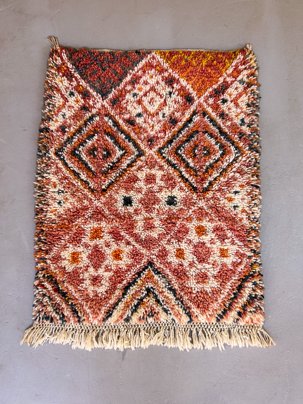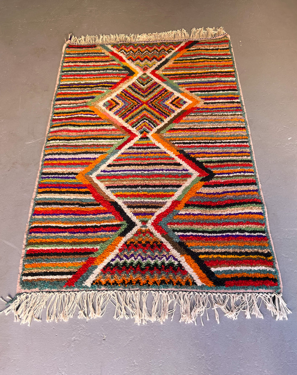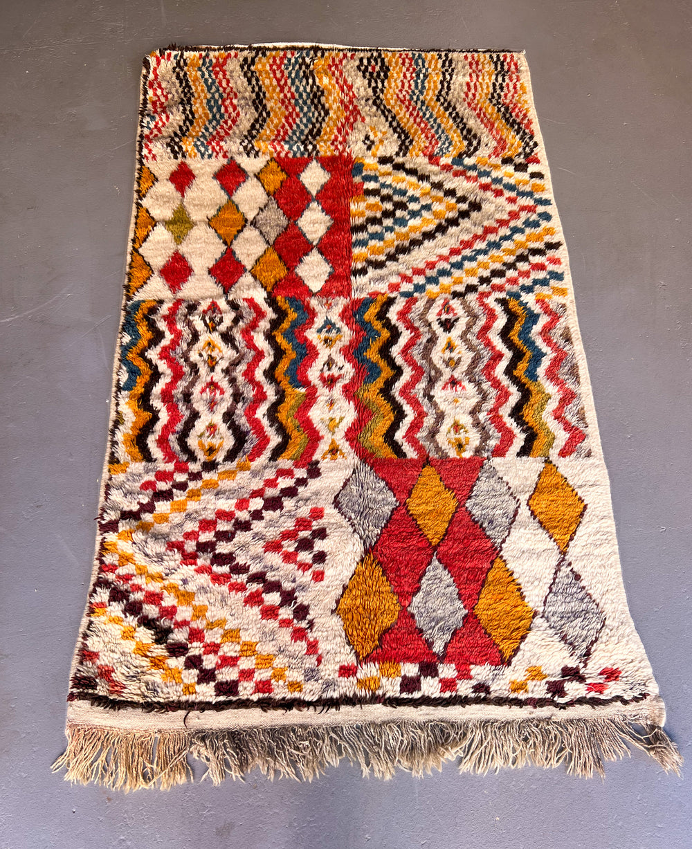The low hand-knot style of rug most often comes from the Southeastern tribes in and around the Siroua region. The pile of these rugs is much shorter than the hand-knot rugs from the north. Despite the shorter pile, these pieces are still quite plush and cozy.