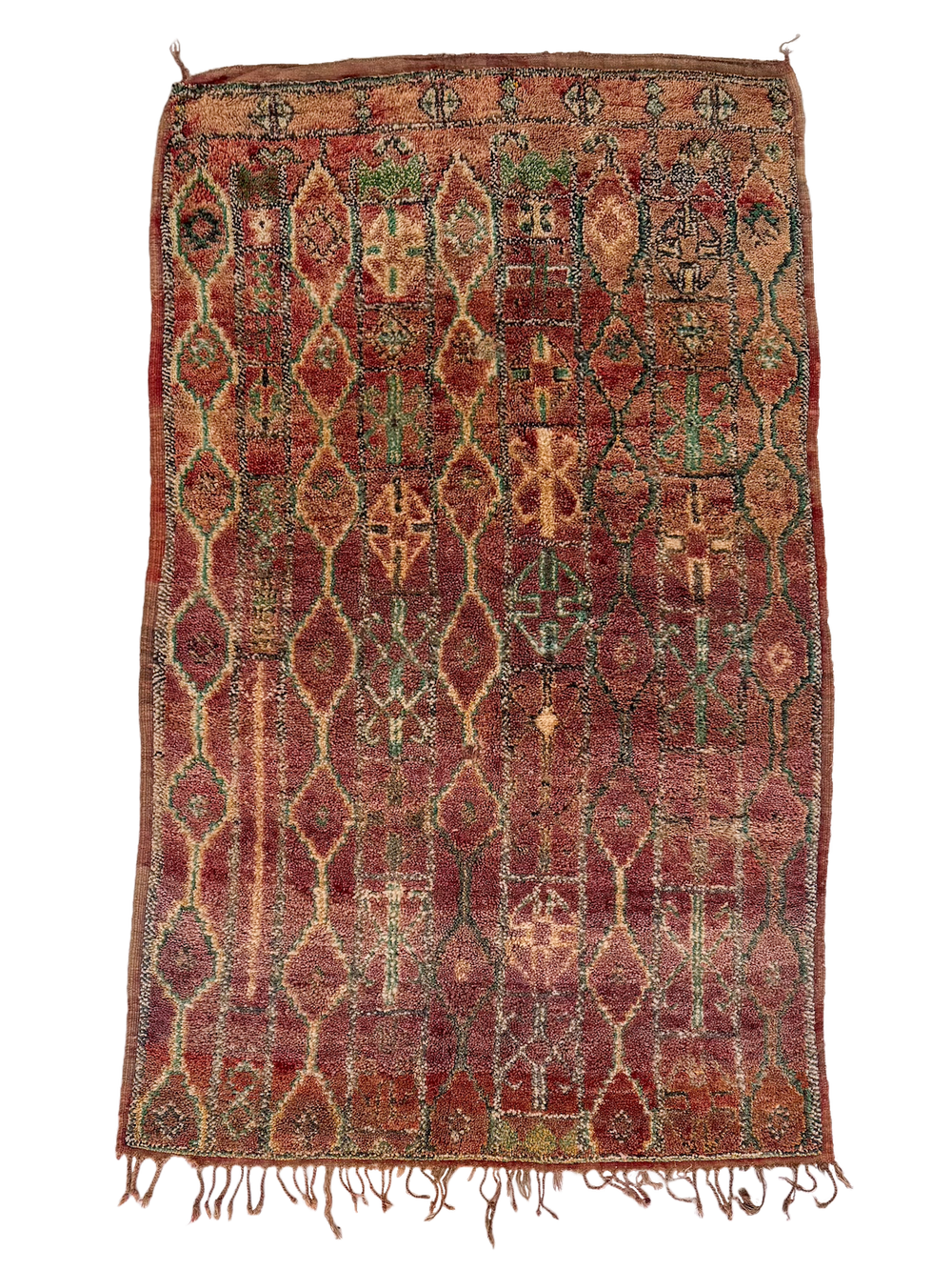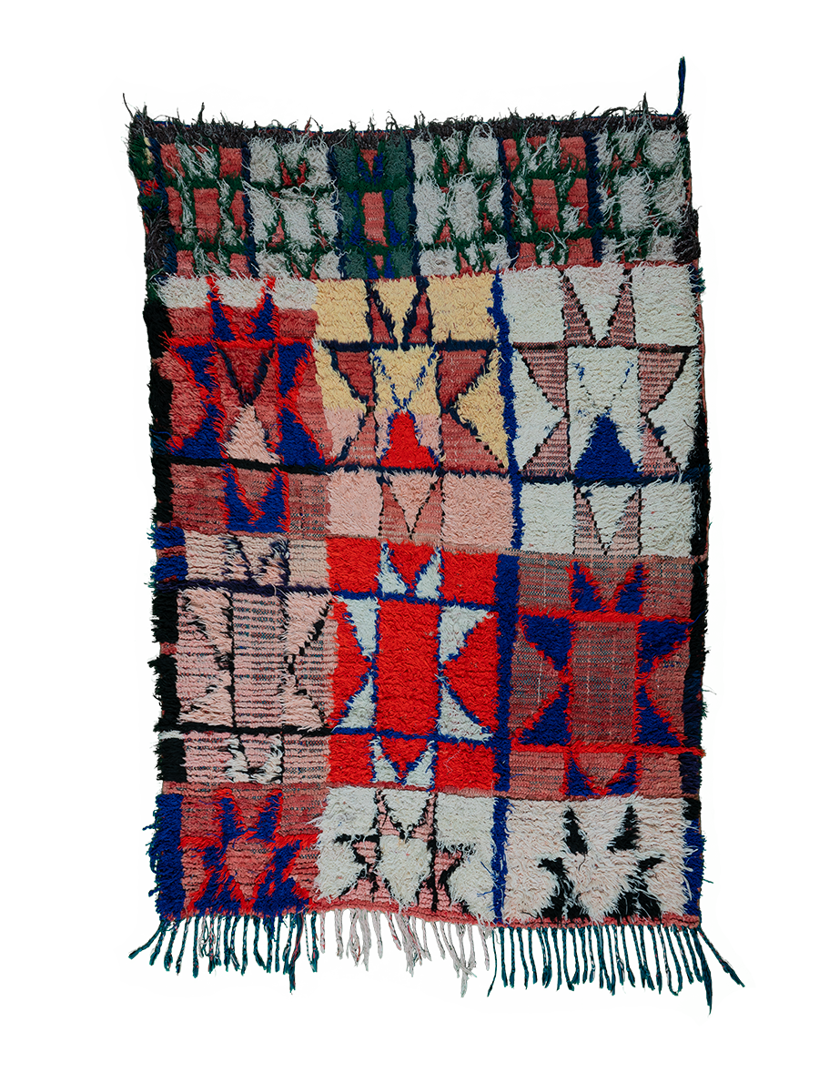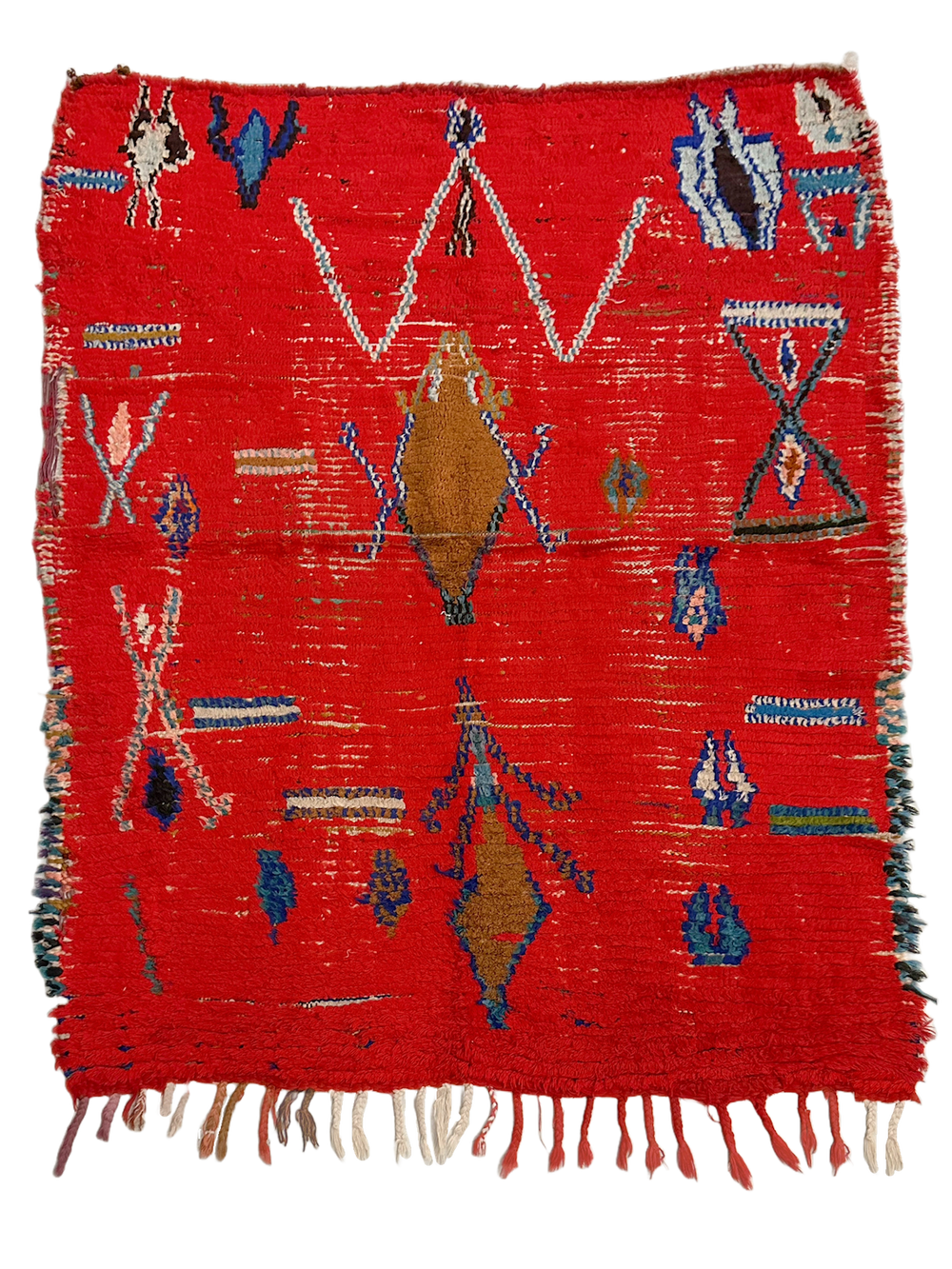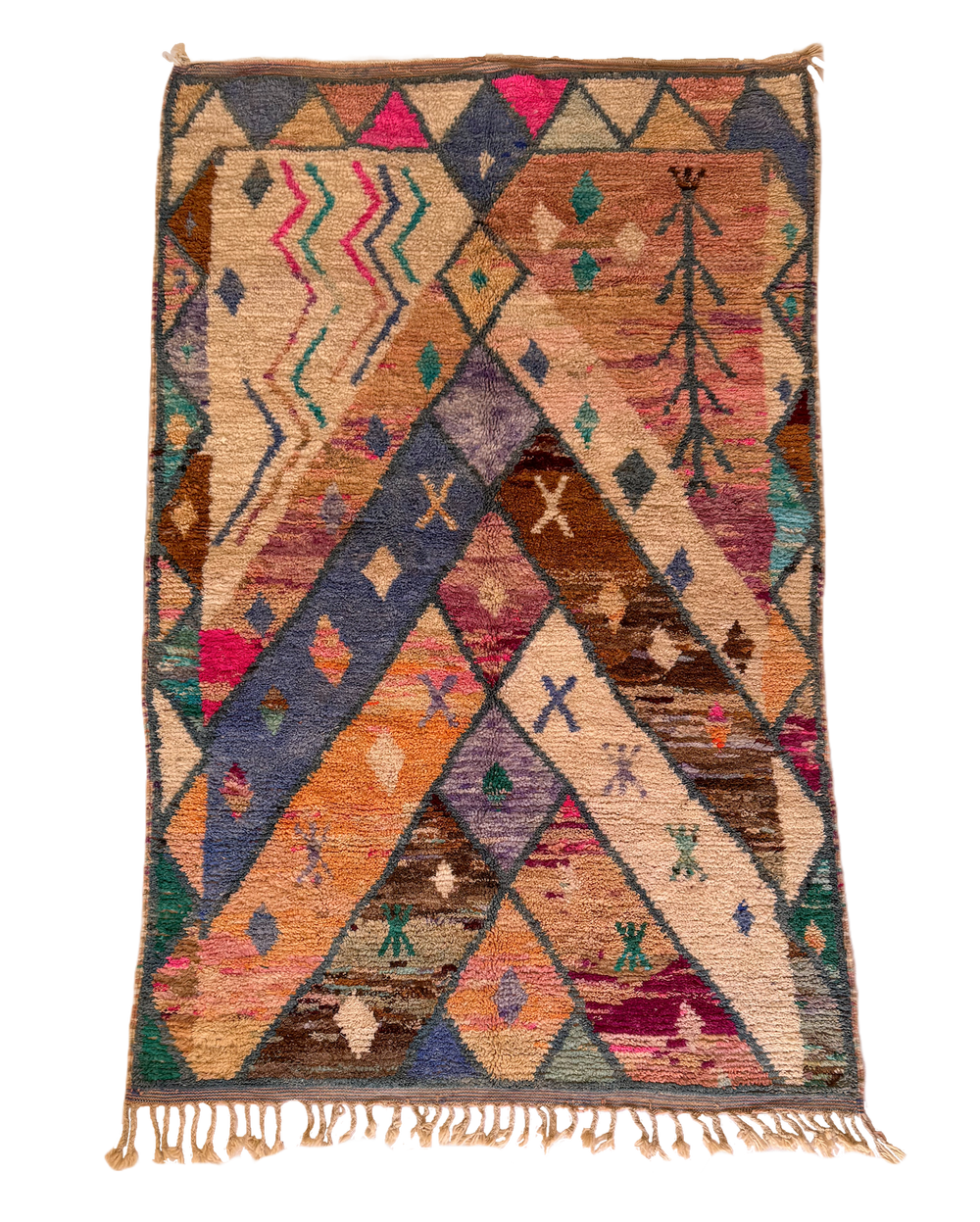 The low hand-knot style of rug most often comes from the Southeastern tribes in and around the Siroua region. The pile of these rugs is much shorter than the hand-knot rugs from the north. Despite the shorter pile, these pieces are still quite plush and cozy.