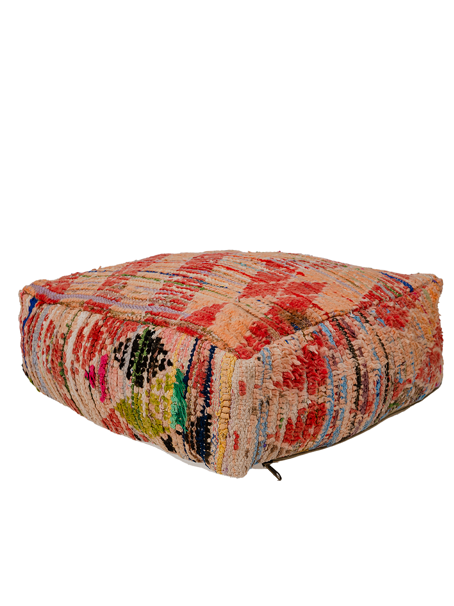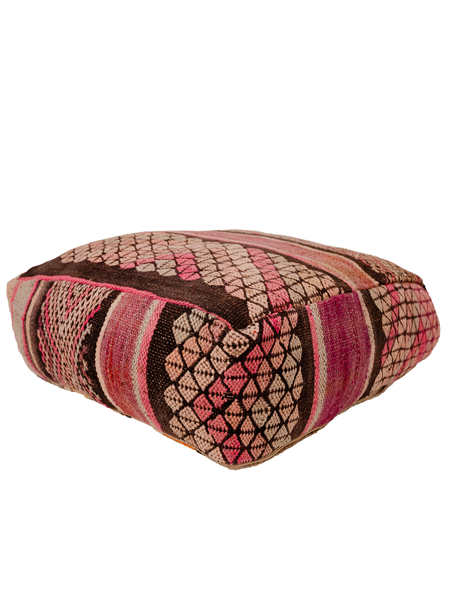 Each pillow and pouf is one-of-a-kind. They're all inspired by, or made from, a textile that was woven by our artisan community.
