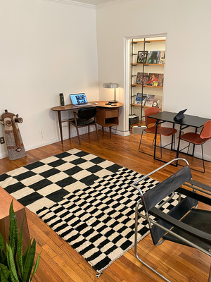 Adding texture and comfort to your workspace, can make work feel a little less like work. Try grounding your home office with a rug that compliments your desk size.