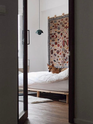 Hanging rugs on the wall can be a funky way to highlight the amazing handmade designs that many of these artisans bring to life.