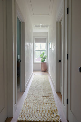 In narrow spaces, a runner is the best value add. It can be used as a transition piece for a hallway or by adding color and warmth to the floor.