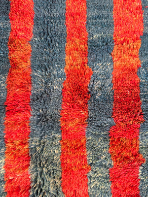 The majority of these rugs come from the Middle Atlas and High Atlas Mountains. The local sheep in these colder climates have a thicker coat to sustain them during the winter months, which impacts the thickness of the wool, and in turn, contributes to the height of the pile.
