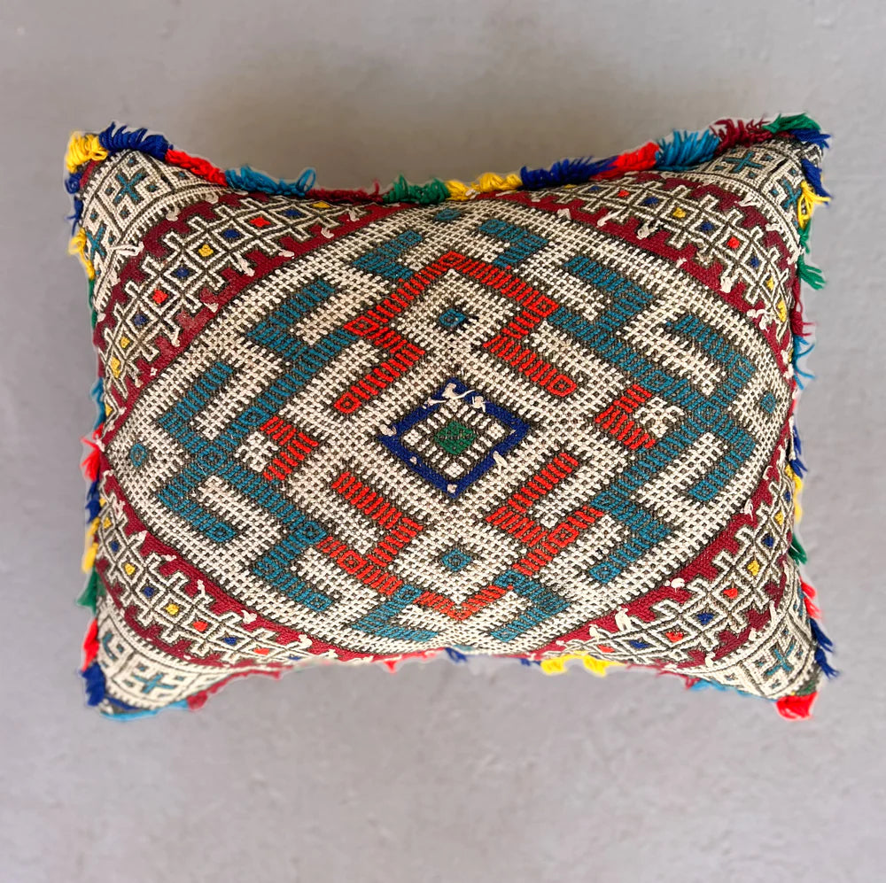 Cooperative Tisseuses has existed since 1977 and was one the first weaving Cooperatives officially recognized in Morocco. As of today, the Cooperative is comprised of 24 full-time members. Ain Leuh is located in the Middle Atlas Mountains and is known for intricate Zemmour Hanbels and colorful Boucherouites.