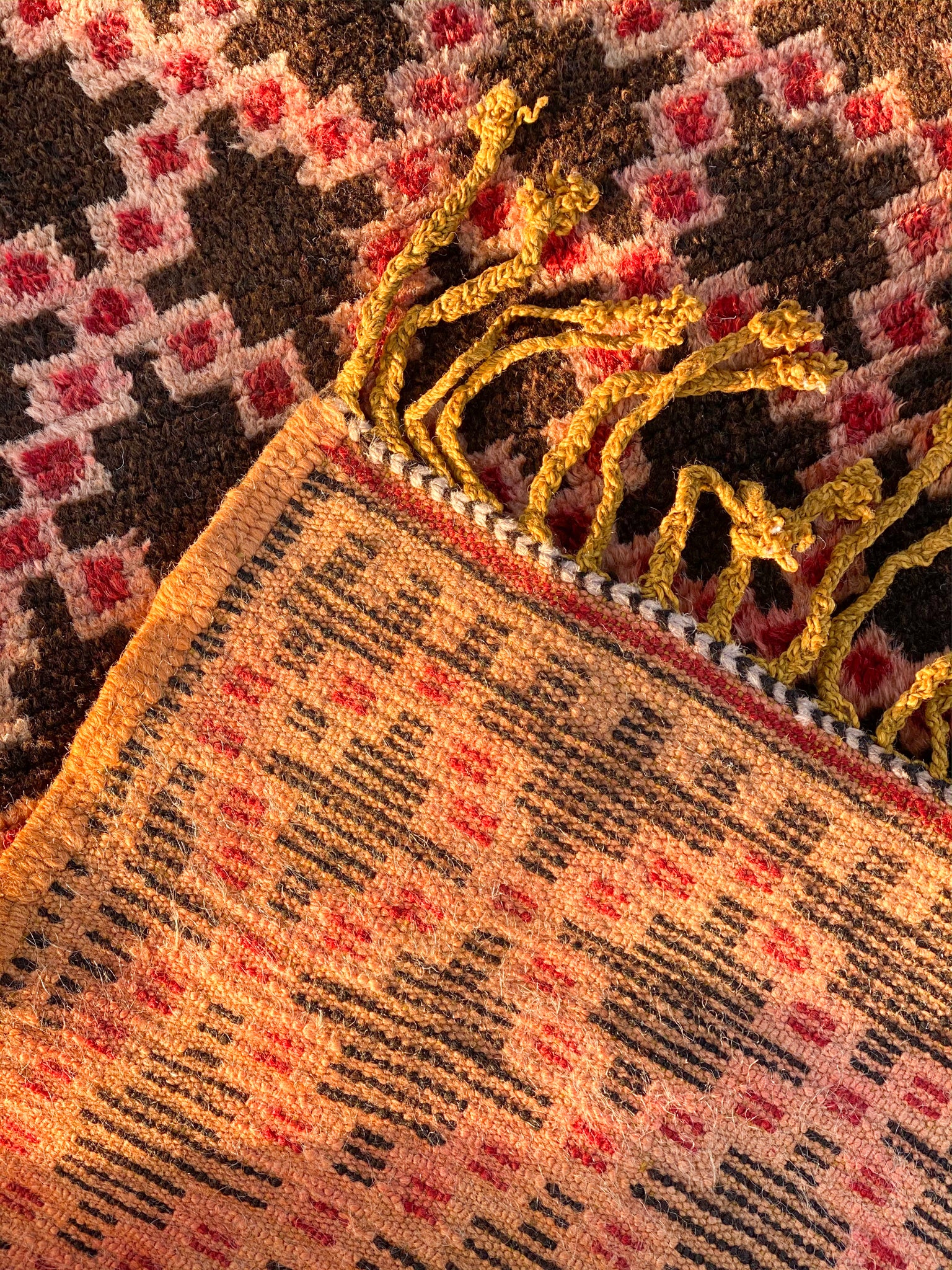 Our process is different, as we work directly with the women selling these heirloom rug pieces. We visit their homes and neighborhoods to see the pieces in-person and negotiate face-to-face.