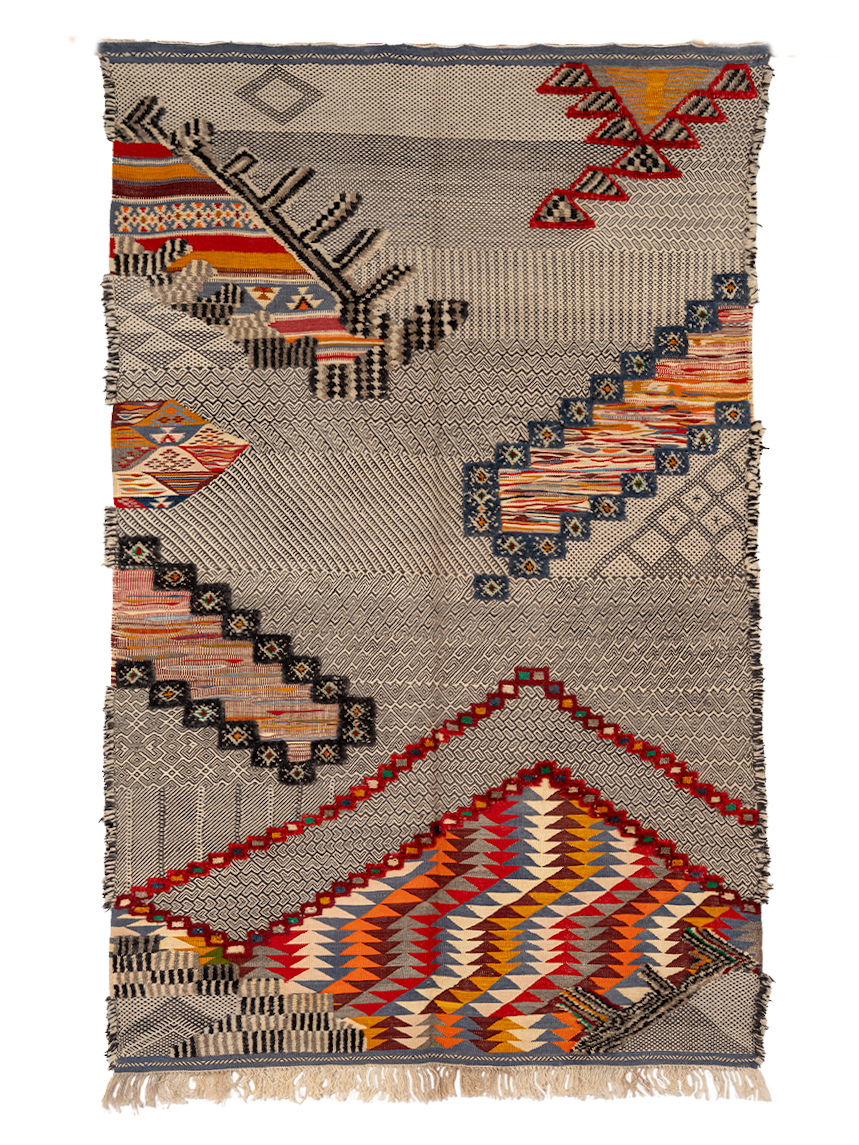 Glaoui is an extremely technical weave as it incorporates three techniques: Flatweave, Hand-Knot and Embroidery.