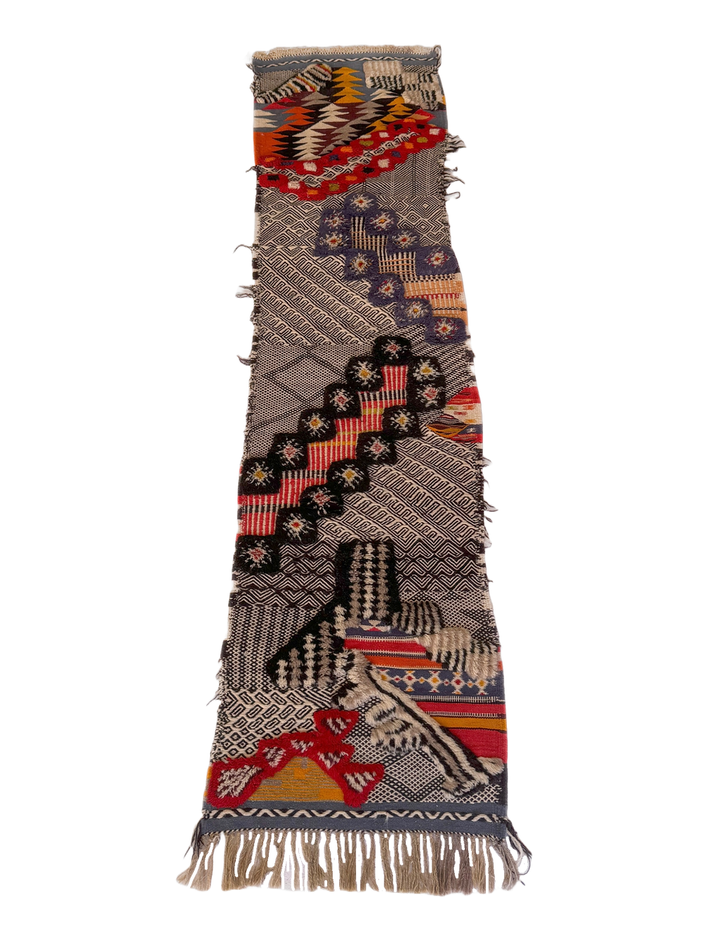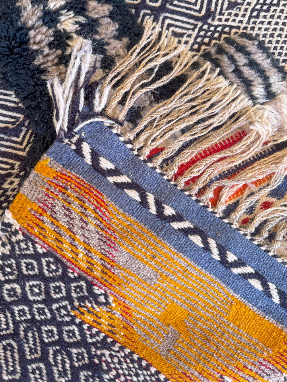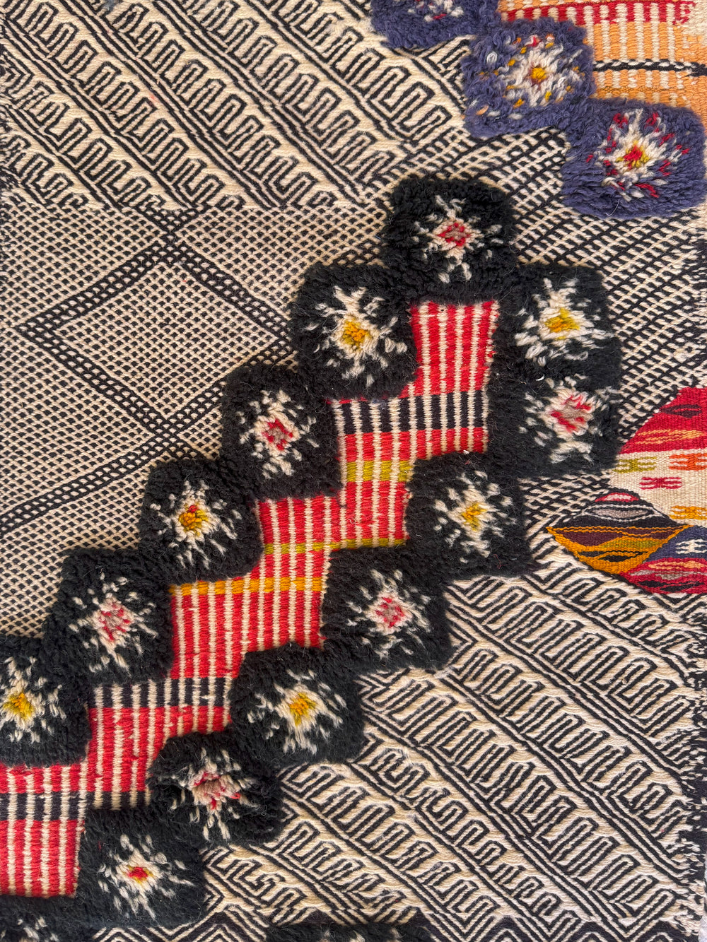 Glaoui is an extremely technical weave as it incorporates three techniques: Flatweave, Hand-Knot and Embroidery.