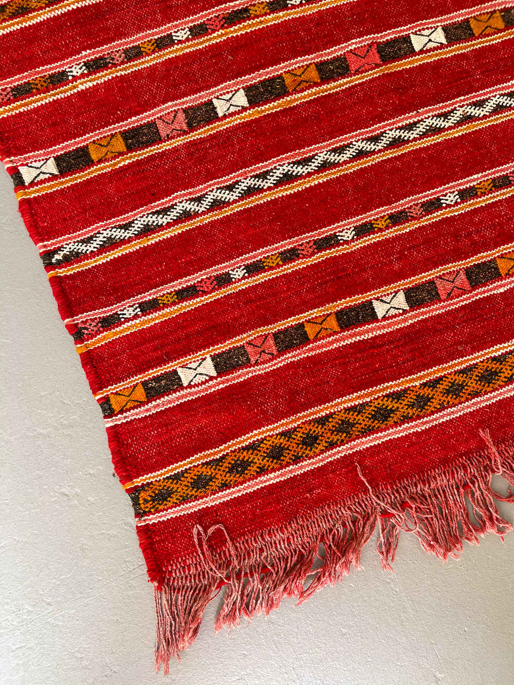 The Kilim technique originates from Tifelt, a northern Moroccan town renowned for its rich Amazigh weaving traditions.