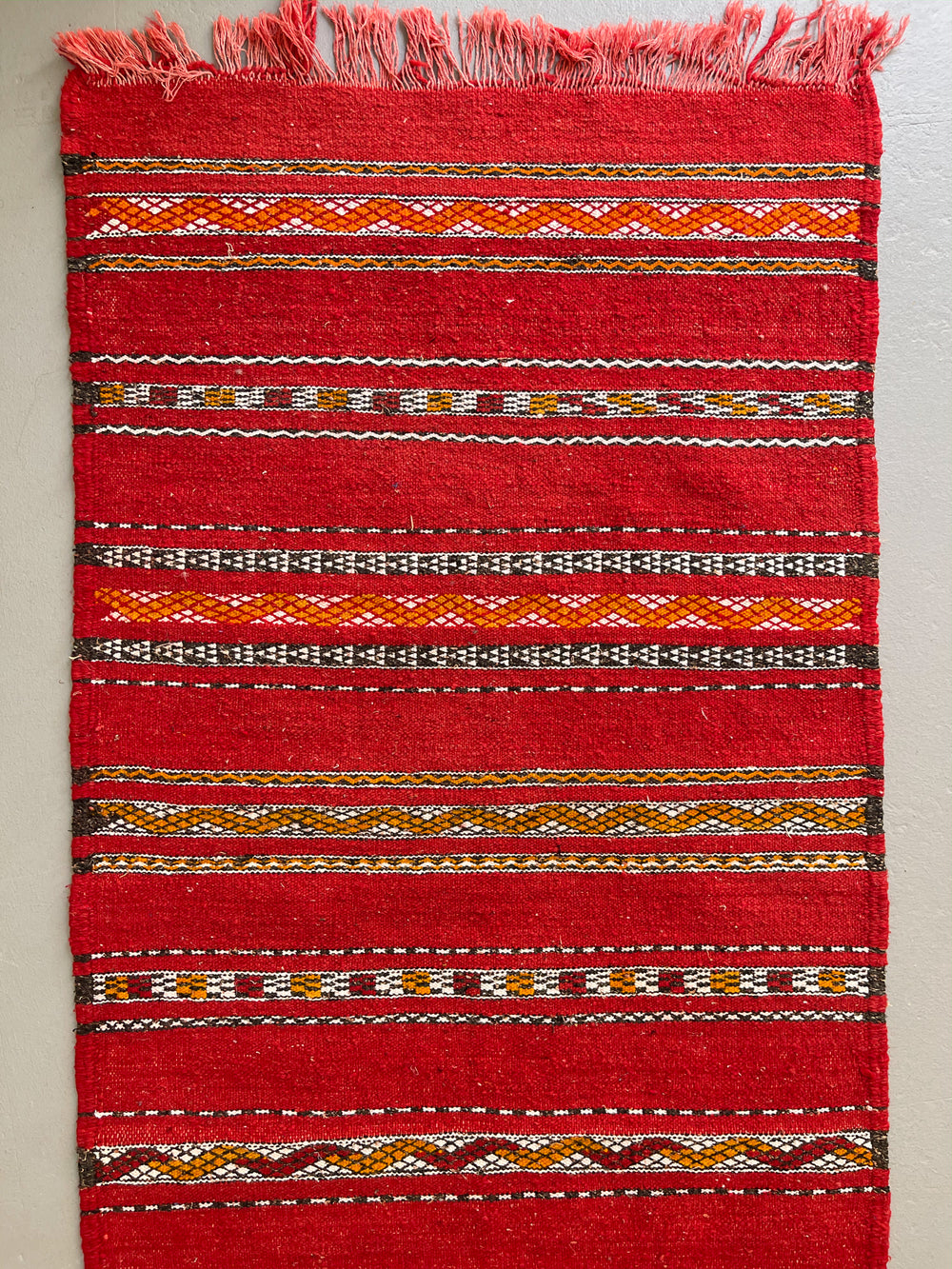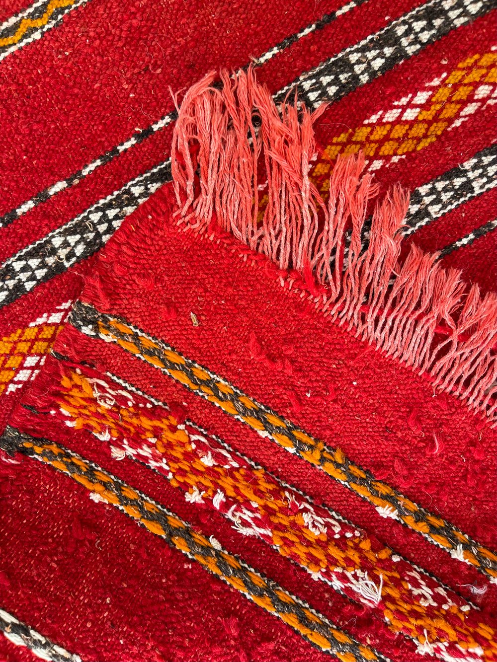 The Kilim technique originates from Tifelt, a northern Moroccan town renowned for its rich Amazigh weaving traditions.