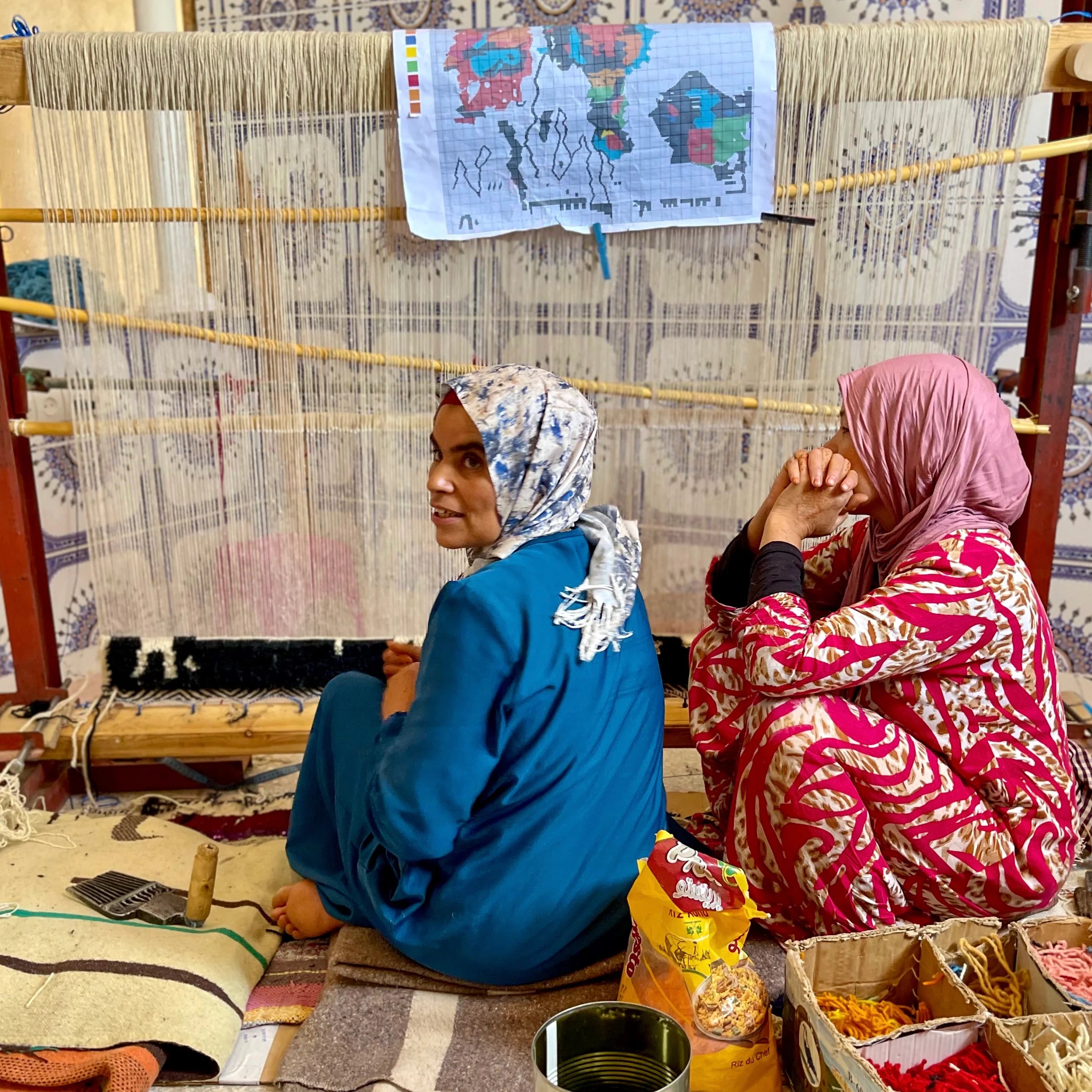 This Women-Only Association is located in the Village of Anzal, about 30 kilometers north of the popular weaving town, Tazenakht. The Anzal collective was founded in 2007 and is kept alive by women passing the craft down through the generations. Saida, the President of the Association, is our liaison for all our custom orders.