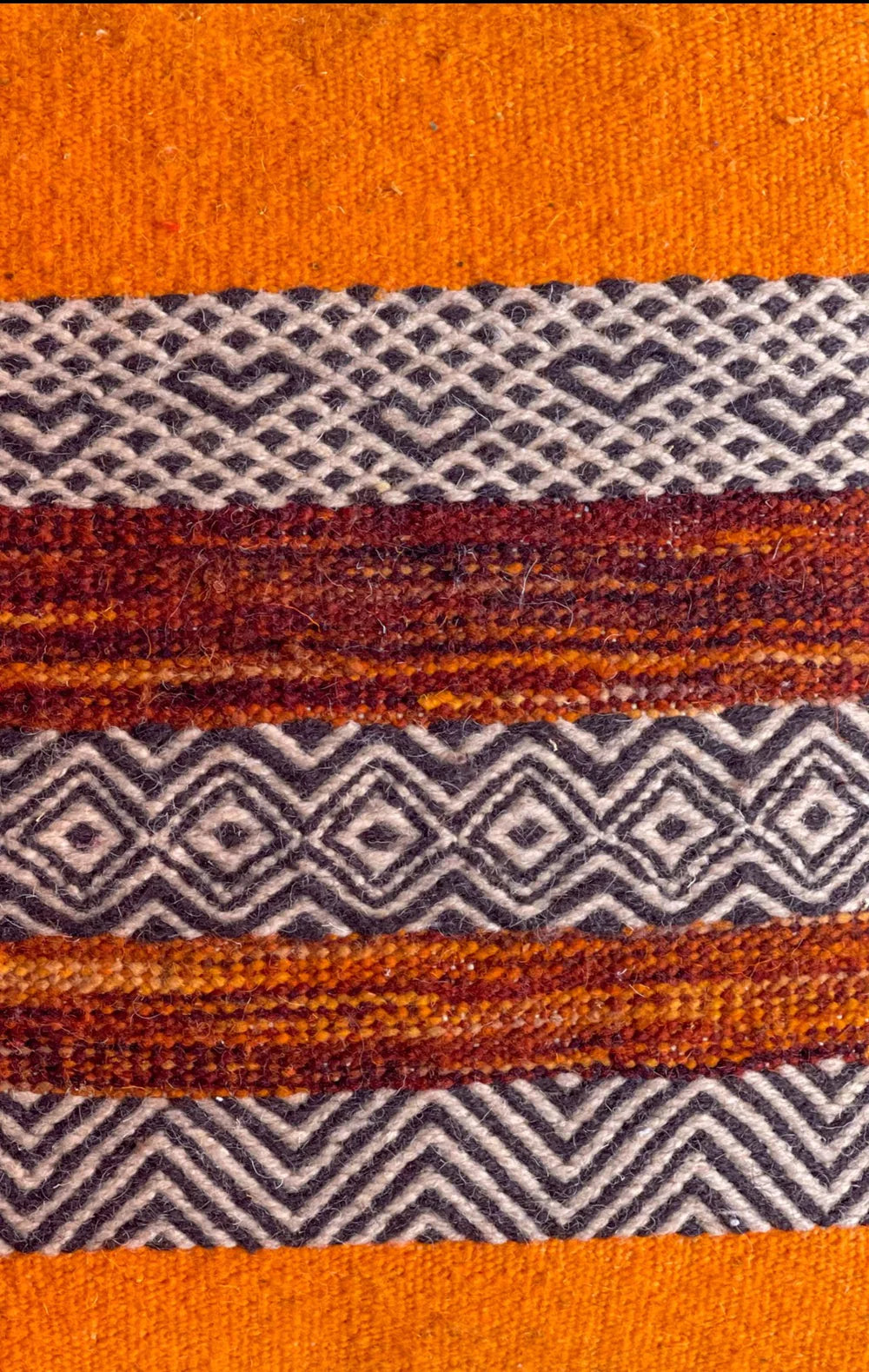 Mixed weaving techniques represent a new modern technique where the artisan will bring two techniques she specializes in. The combinations could be endless either combining two techniques such as Zanafi x Hand-Knot, or three Hand-Knot, Flatweave and Zanafi.