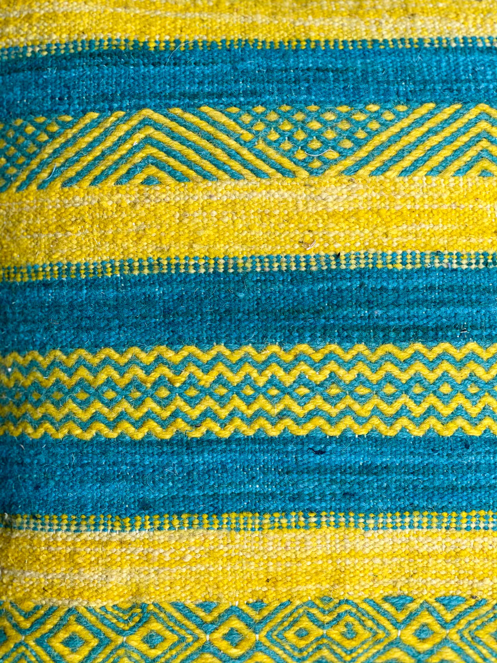 Anzal's Flatweave x Zanafi Pillow - Yellow/Teal - Salam Hello