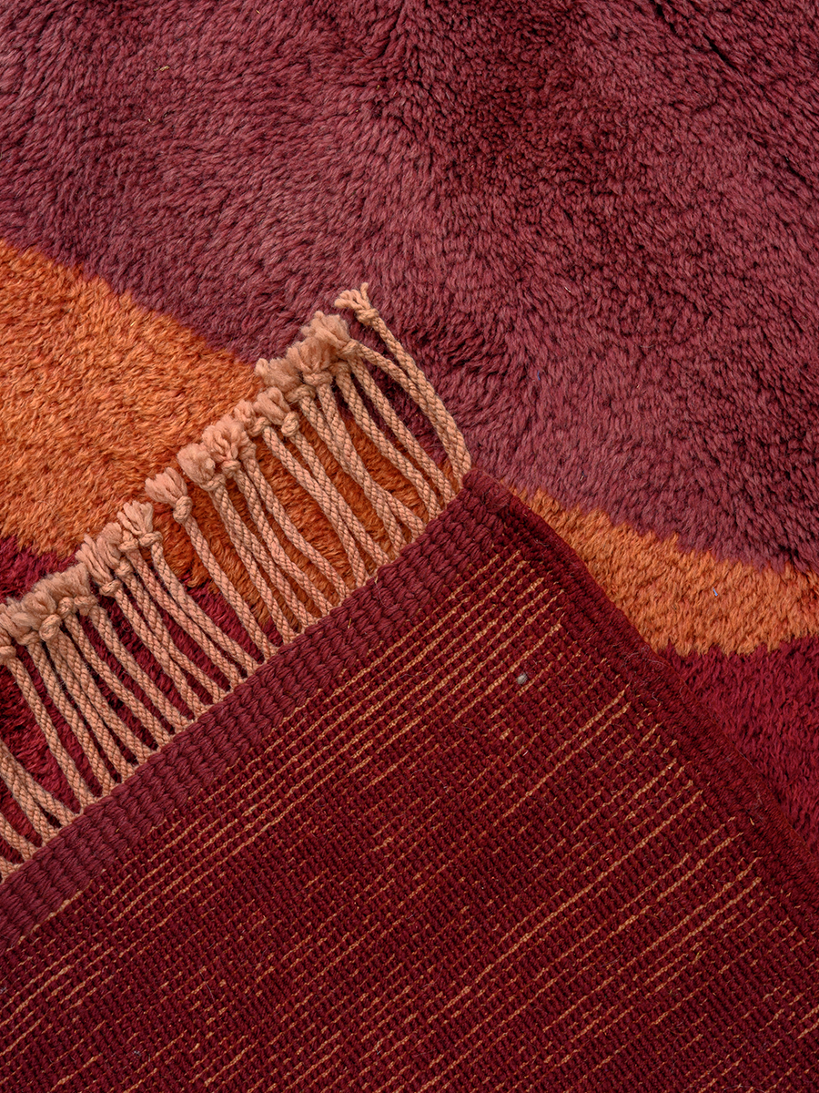 Soukina leads a group of 35 artisans from a village just outside Beni M’rirt in the Middle Atlas Mountains. Founded in the early 2000s by Soukina’s late mother, Ketlouma, the collective specializes in medium to high hand-knot rugs—a style named after the region—as well as M’rirt Zanafi rugs, their unique interpretation of the Zanafi style from the southeast. Traditional rugs from this area are crafted using a thick knotting technique, resulting in an extra-plush texture.