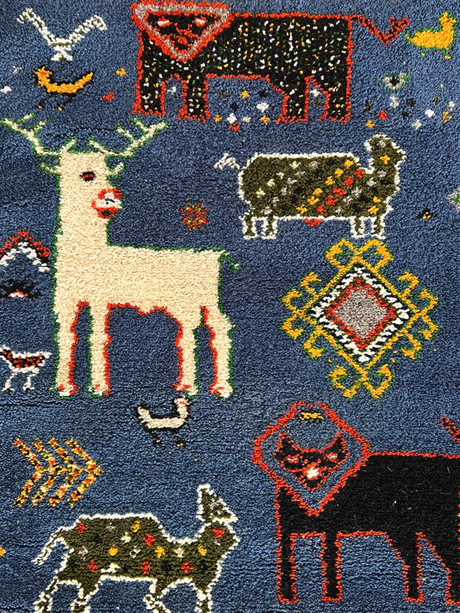 One significant difference in technique with this rug is the artisans usually pre-cut the wool prior to weaving on the loom, while the women in the north cut the wool after looping it around the loom.