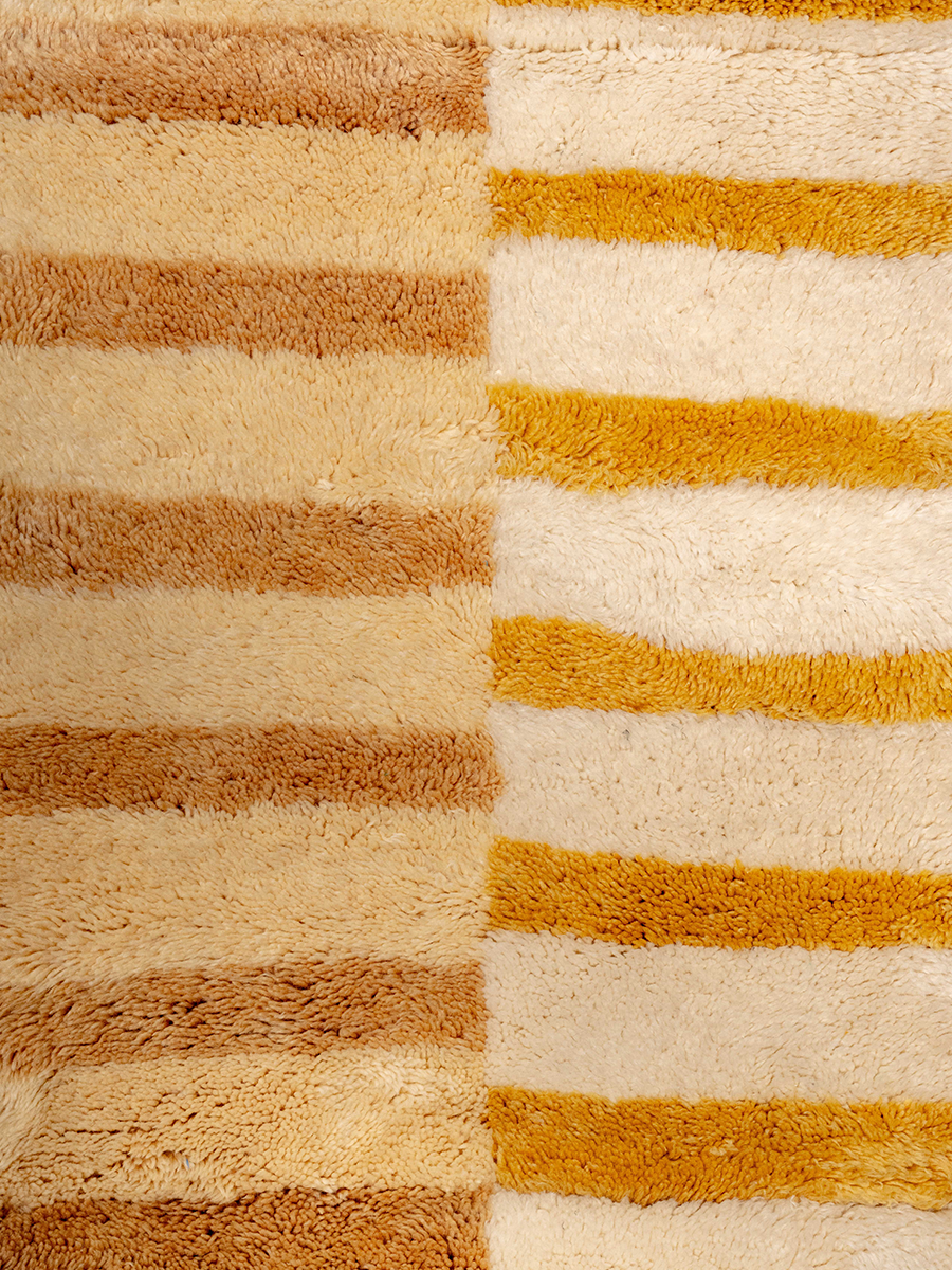 Soukina leads a group of 35 artisans from a village just outside Beni M’rirt in the Middle Atlas Mountains. Founded in the early 2000s by Soukina’s late mother, Ketlouma, the collective specializes in medium to high hand-knot rugs—a style named after the region—as well as M’rirt Zanafi rugs, their unique interpretation of the Zanafi style from the southeast. Traditional rugs from this area are crafted using a thick knotting technique, resulting in an extra-plush texture.