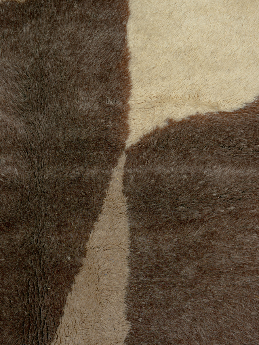 Soukina leads a group of 35 artisans from a village just outside Beni M’rirt in the Middle Atlas Mountains. Founded in the early 2000s by Soukina’s late mother, Ketlouma, the collective specializes in medium to high hand-knot rugs—a style named after the region—as well as M’rirt Zanafi rugs, their unique interpretation of the Zanafi style from the southeast. Traditional rugs from this area are crafted using a thick knotting technique, resulting in an extra-plush texture.