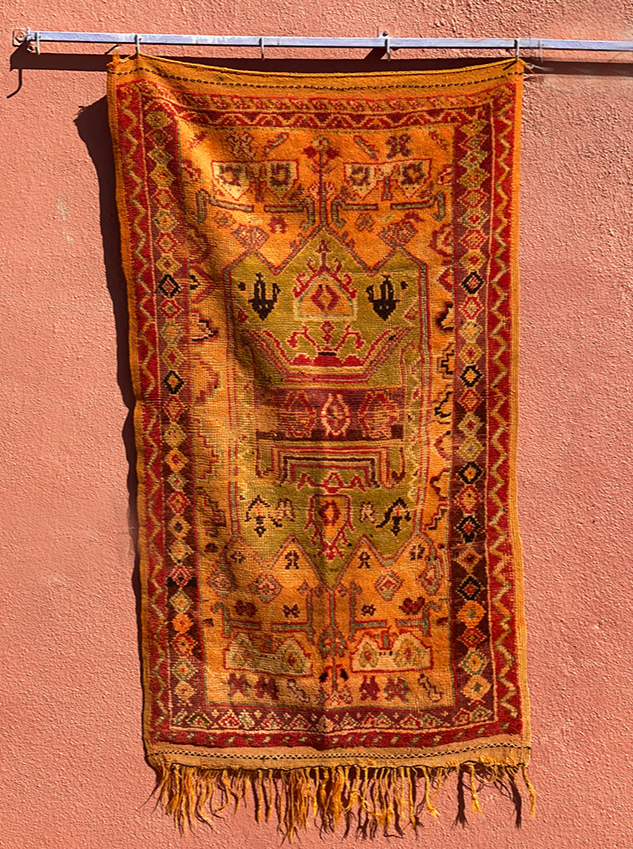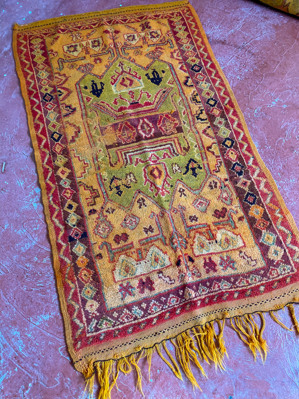 Most vintage rugs you will find in local Moroccan markets are purchased by male brokers, who visit neighboring villages and buy up all the pieces they can in one transaction.