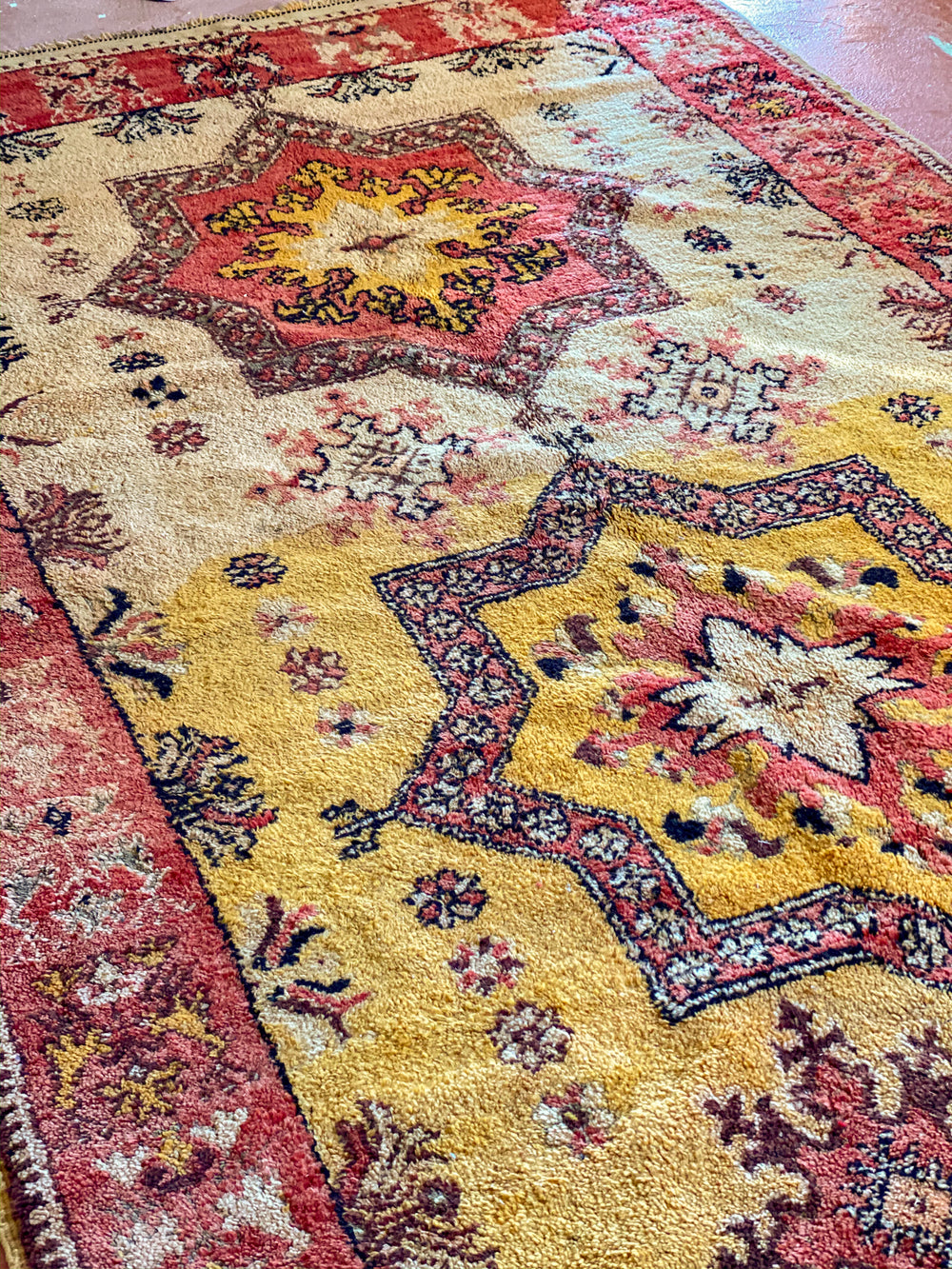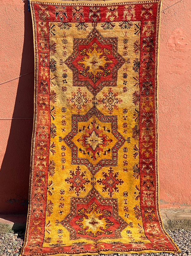 Most vintage rugs you will find in local Moroccan markets are purchased by male brokers, who visit neighboring villages and buy up all the pieces they can in one transaction.