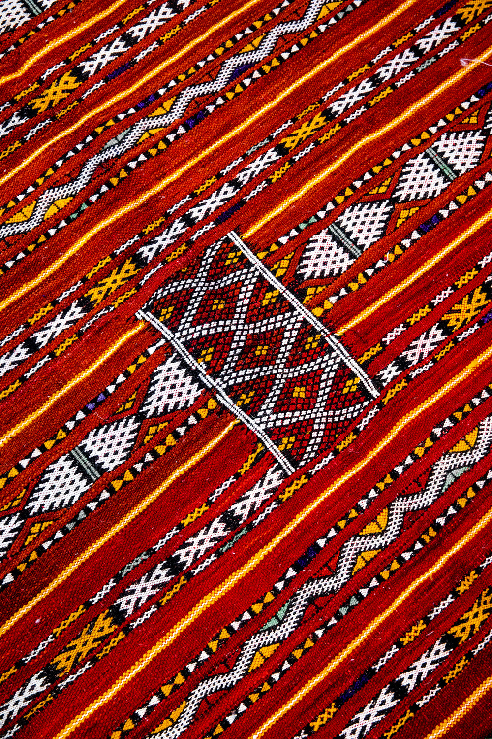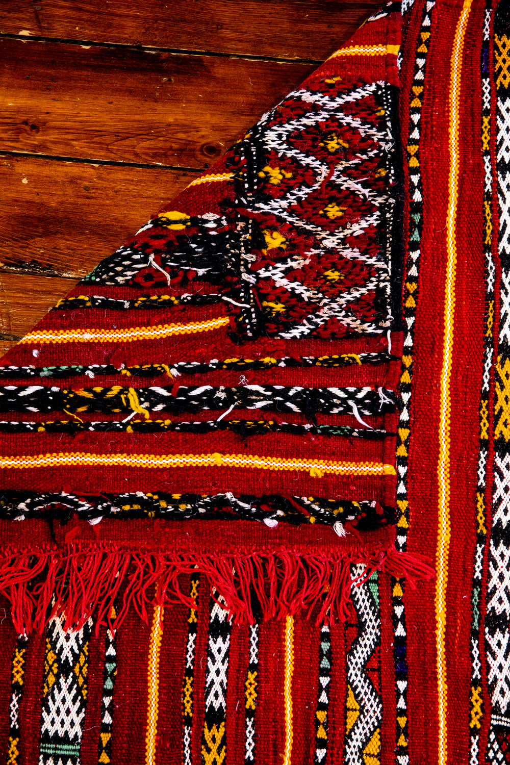 The Kilim technique originates from Tifelt, a northern Moroccan town renowned for its rich Amazigh weaving traditions.