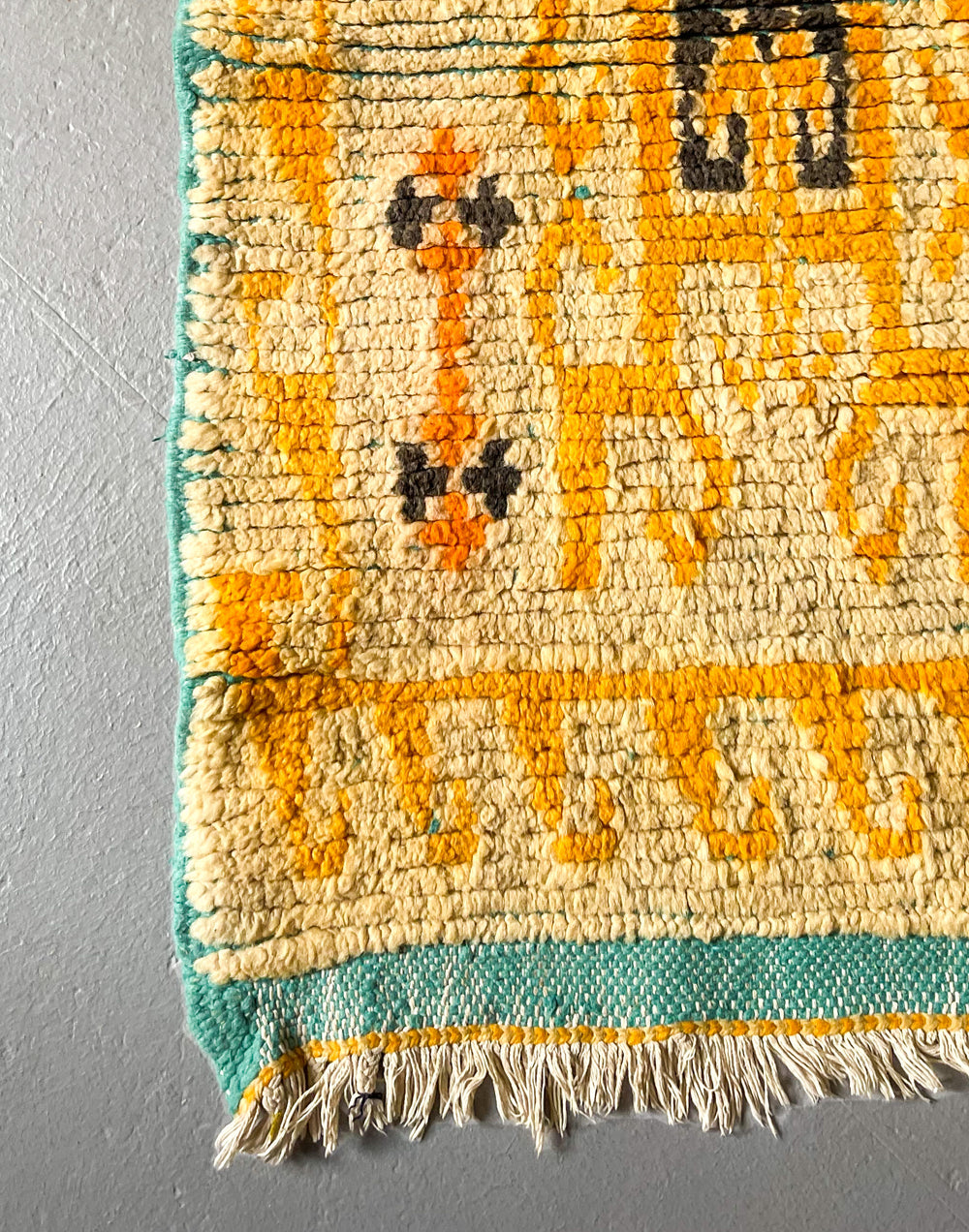 Saida and her sister Khadijah started a small Association of women weavers in their Village to help their elder neighbors sell their beautiful, handcrafted rugs. The women live in the Al Haouz Province of Morocco, 20 kilometers outside of Amizmiz in the High Atlas Mountains. This Province is home to the Boujad Tribe and the rugs crafted in this region take on the Tribe’s namesake.