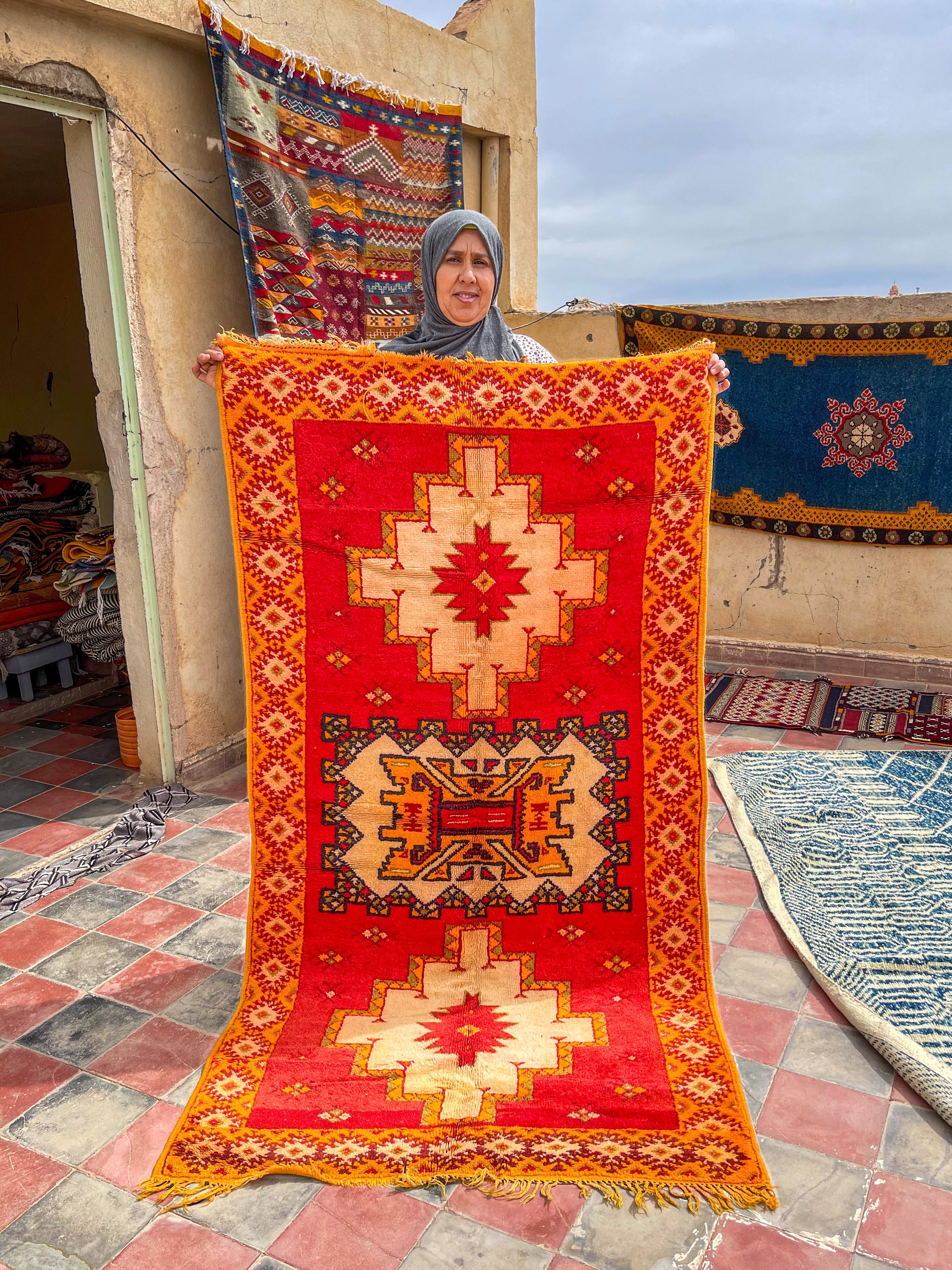 Most vintage rugs you will find in local Moroccan markets are purchased by male brokers, who visit neighboring villages and buy up all the pieces they can in one transaction.