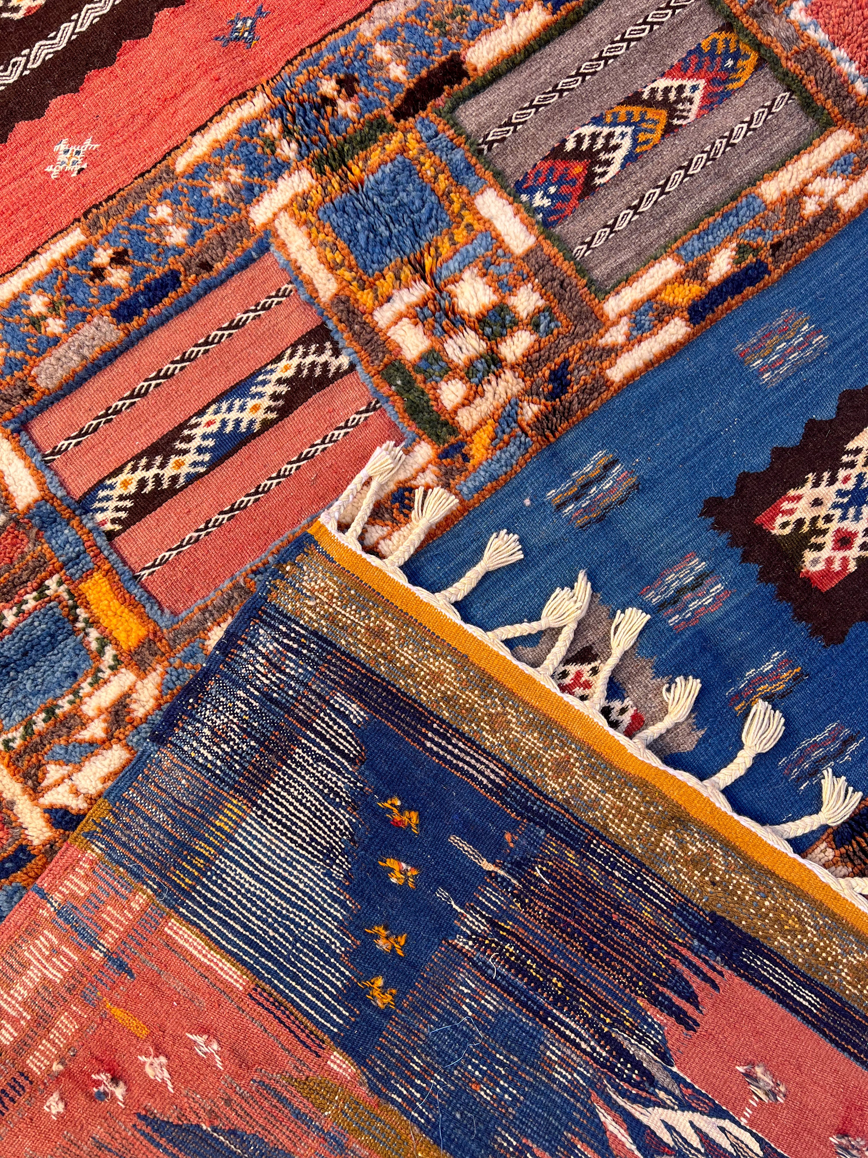 Glaoui is an extremely technical weave as it incorporates three techniques: Flatweave, Hand-Knot and Embroidery.