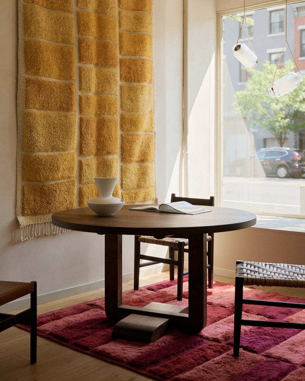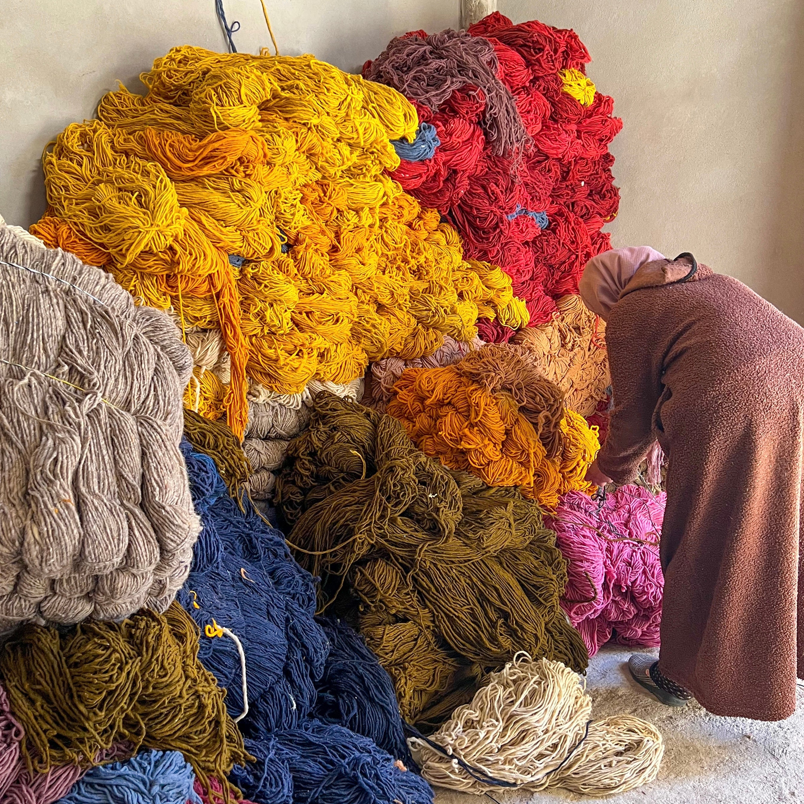 Soukina leads a group of 35 artisans from a village just outside Beni M’rirt in the Middle Atlas Mountains. Founded in the early 2000s by Soukina’s late mother, Ketlouma, the collective specializes in medium to high hand-knot rugs—a style named after the region—as well as M’rirt Zanafi rugs, their unique interpretation of the Zanafi style from the southeast. Traditional rugs from this area are crafted using a thick knotting technique, resulting in an extra-plush texture.