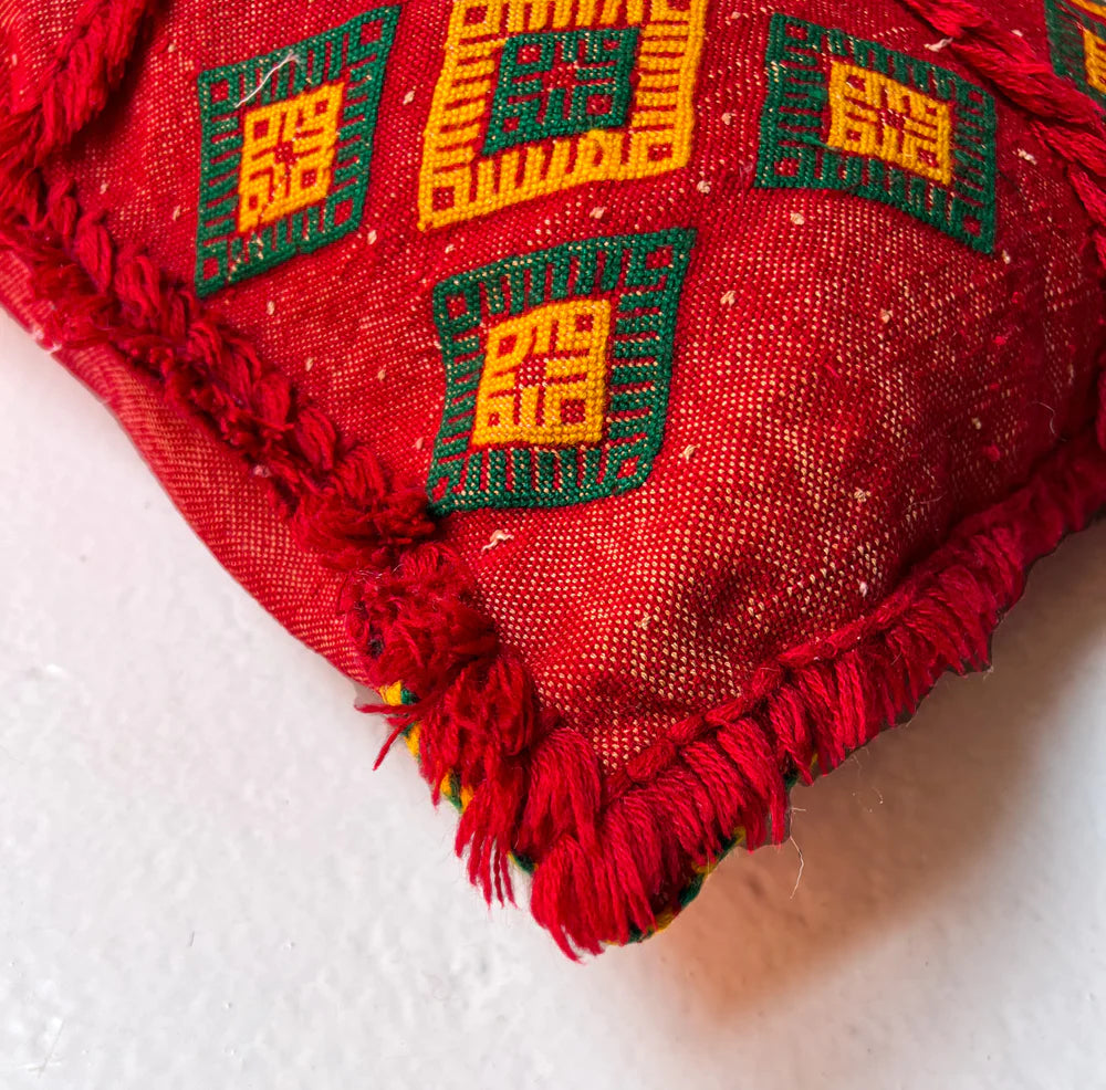 Located in the southeast of Morocco, Kalaat M’Gouna is most known for its Valley of the Roses, celebrated every May by a popular Rose Festival. Mina, the matriarch of this Association, grew up closer to Tazenakht and moved to Kalaat M’Gouna after marrying her husband. She began teaching the weaving craft to friends and neighbors decades ago. In 1995, she formed a small Association made up of Villagers and extended family. Today, there are still 10 members and they make low hand-knot, boucherouite, and kharita rugs.