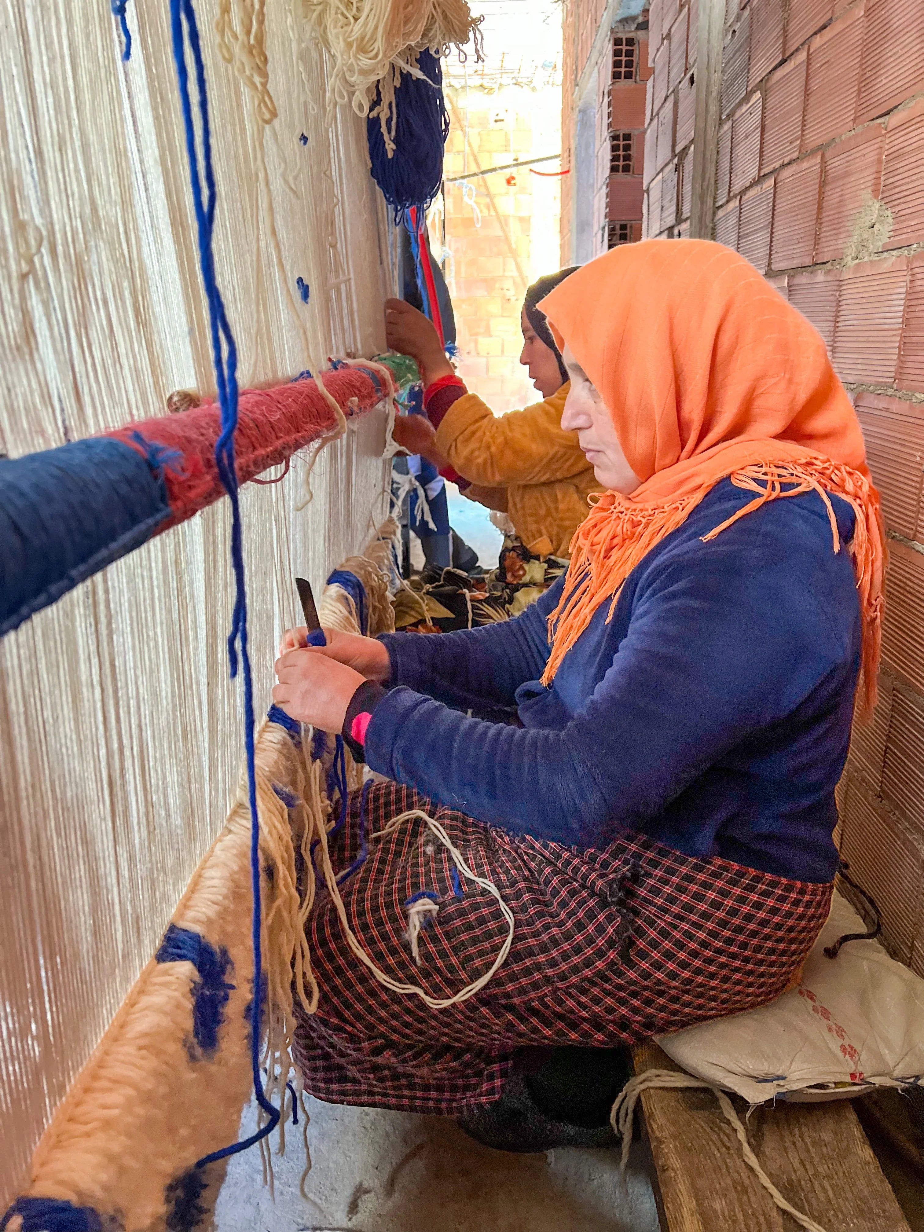 Soukina leads a group of 35 artisans from a village just outside Beni M’rirt in the Middle Atlas Mountains. Founded in the early 2000s by Soukina’s late mother, Ketlouma, the collective specializes in medium to high hand-knot rugs—a style named after the region—as well as M’rirt Zanafi rugs, their unique interpretation of the Zanafi style from the southeast. Traditional rugs from this area are crafted using a thick knotting technique, resulting in an extra-plush texture.