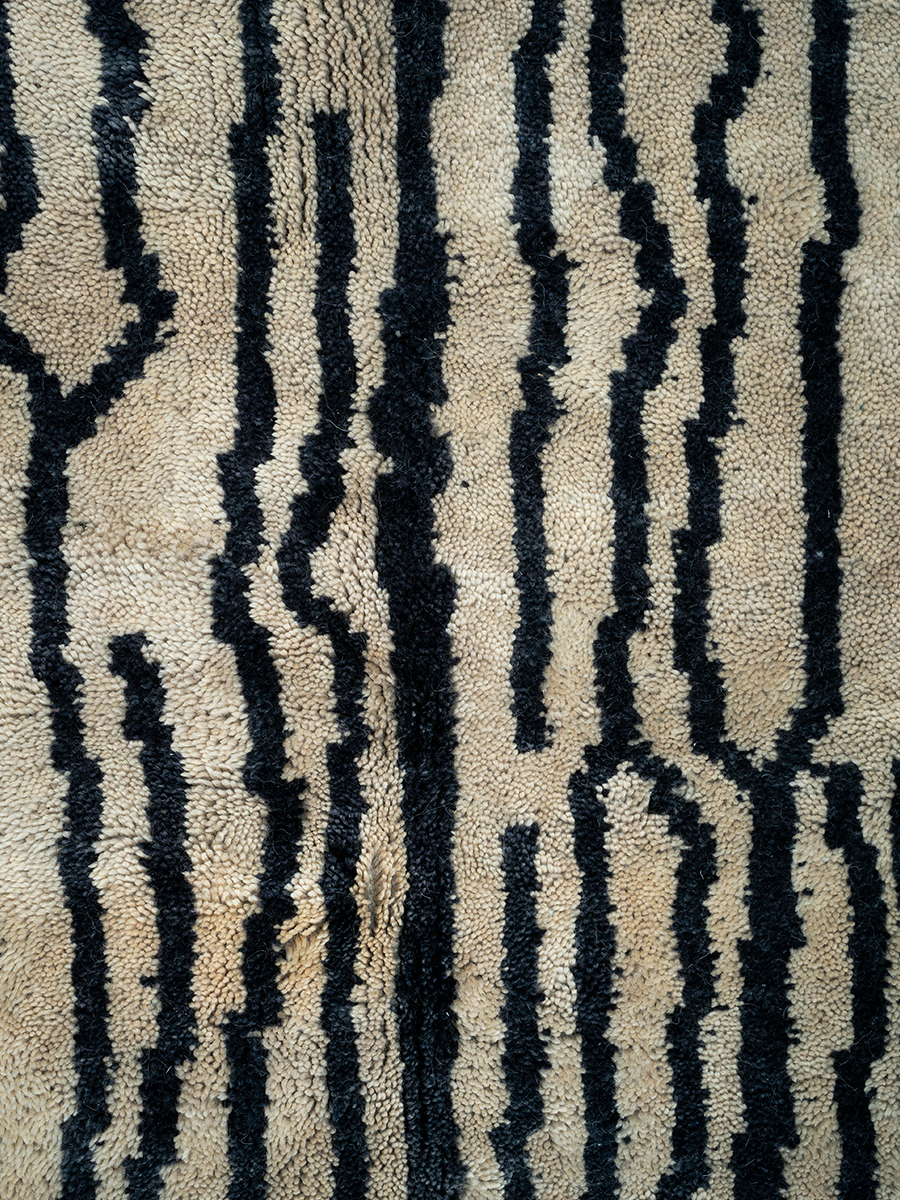 Soukina leads a group of 35 artisans from a village just outside Beni M’rirt in the Middle Atlas Mountains. Founded in the early 2000s by Soukina’s late mother, Ketlouma, the collective specializes in medium to high hand-knot rugs—a style named after the region—as well as M’rirt Zanafi rugs, their unique interpretation of the Zanafi style from the southeast. Traditional rugs from this area are crafted using a thick knotting technique, resulting in an extra-plush texture.