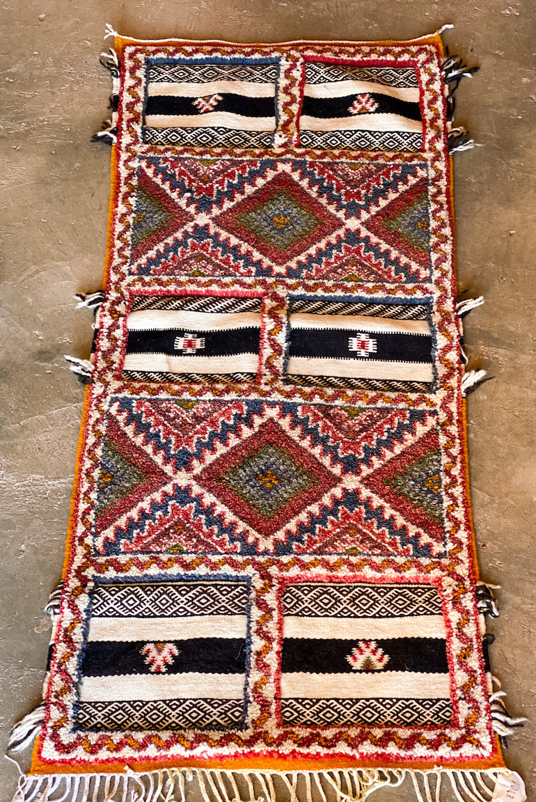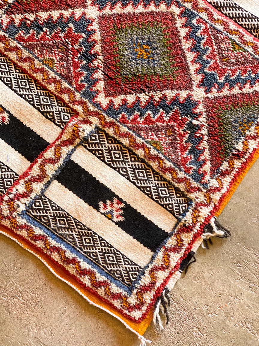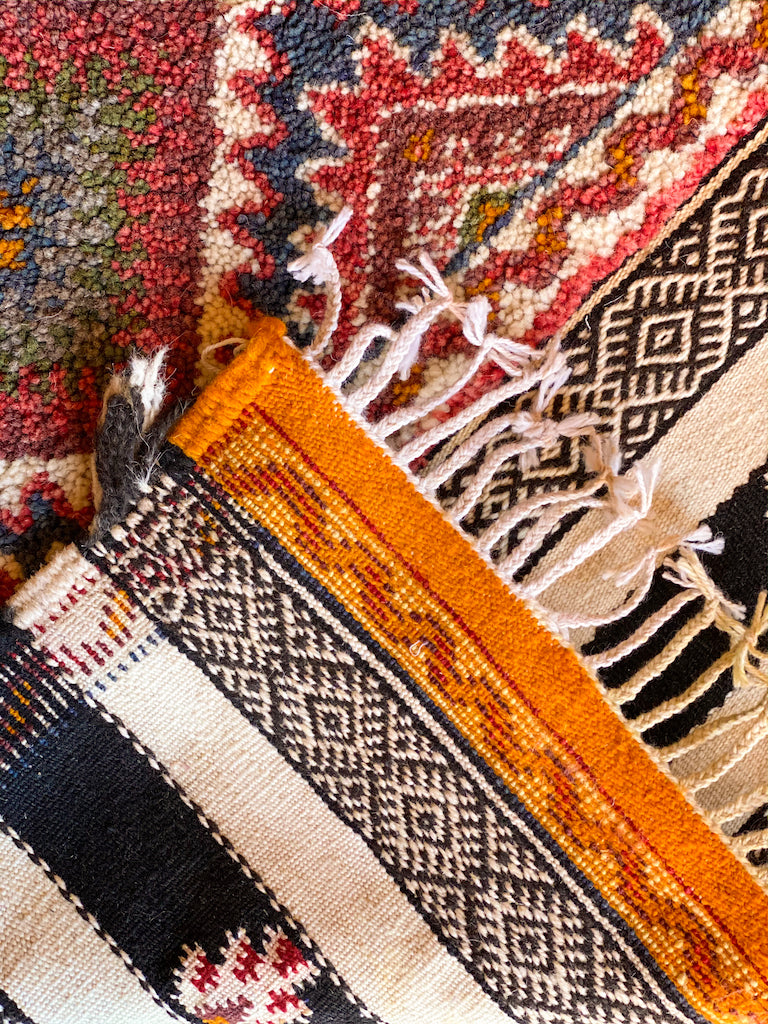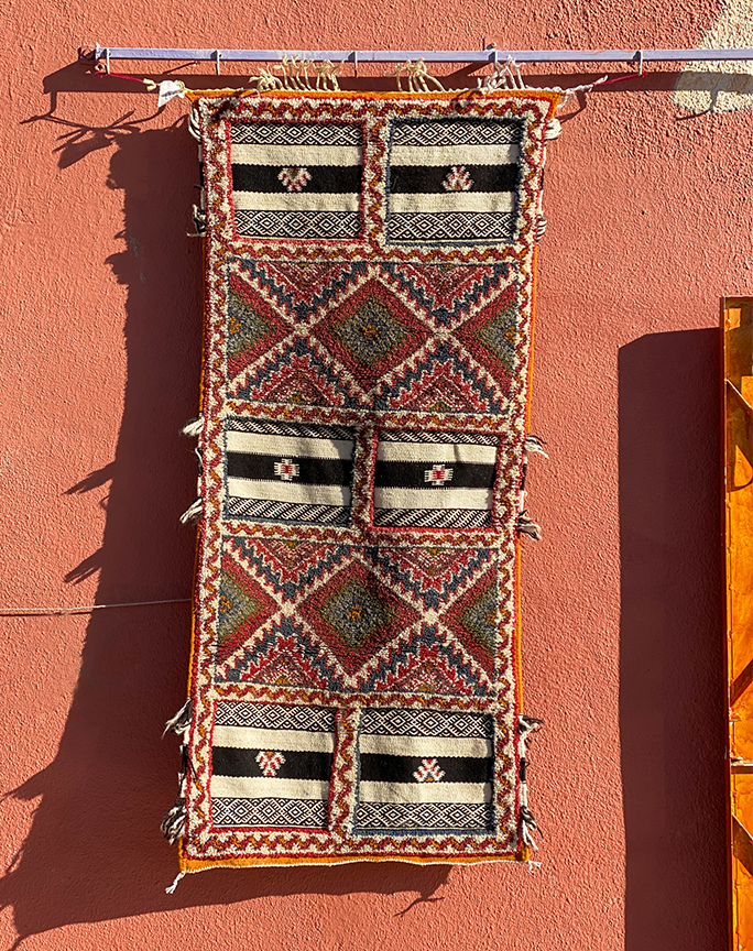 Glaoui is an extremely technical weave as it incorporates three techniques: Flatweave, Hand-Knot and Embroidery.