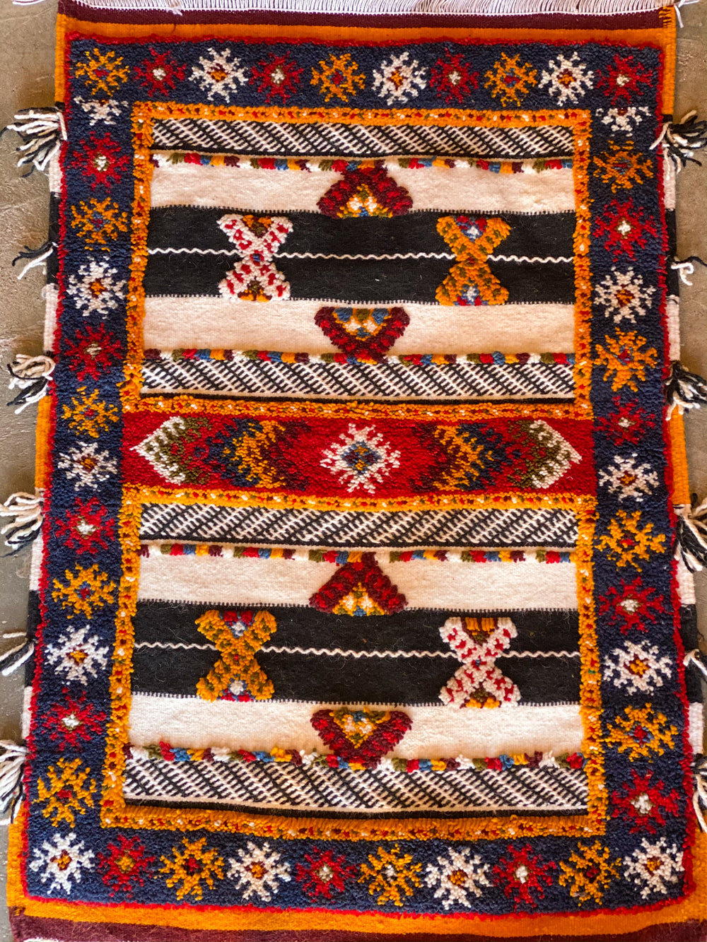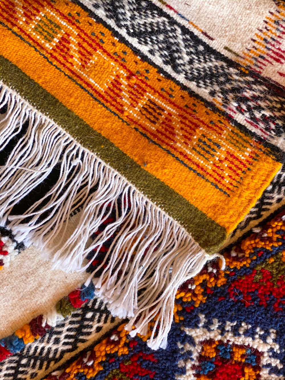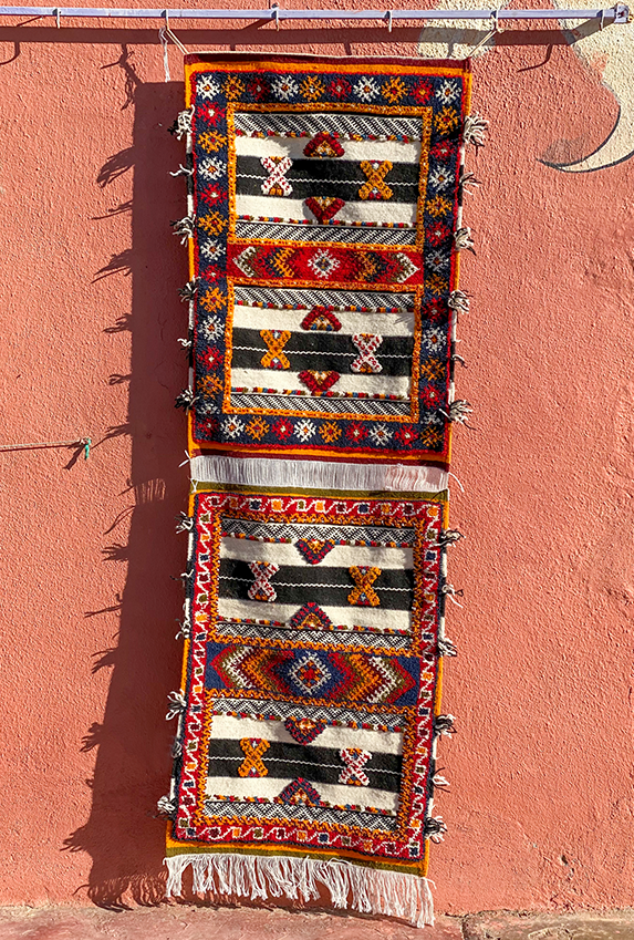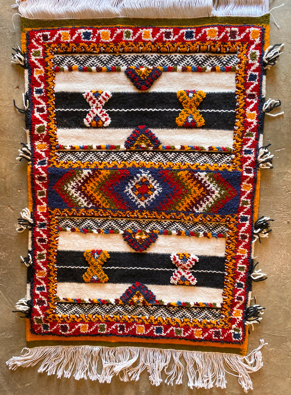 Glaoui is an extremely technical weave as it incorporates three techniques: Flatweave, Hand-Knot and Embroidery.