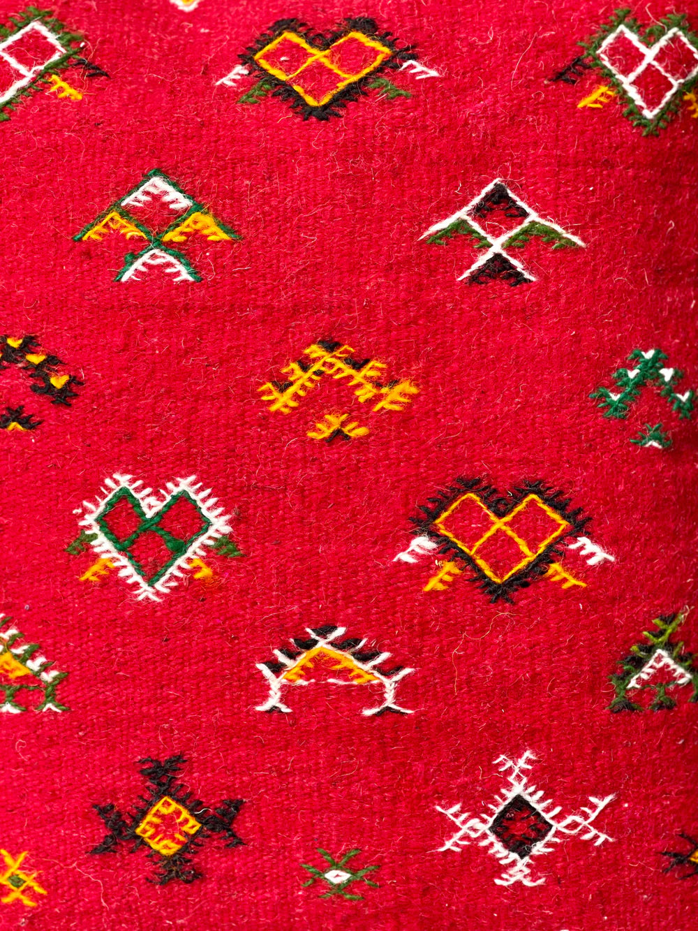 This style is thought to originate from the area in and around the Village of Tazenakht, an area rich with a weaving history. While the majority of this weave is flat, the design accents are either embroidered or have a slightly higher pile, giving this piece texture and dimension. Every design element comes entirely from the artisan’s imagination. The design elements within this technique tend to depict an array of symbolism in the Amazigh culture.