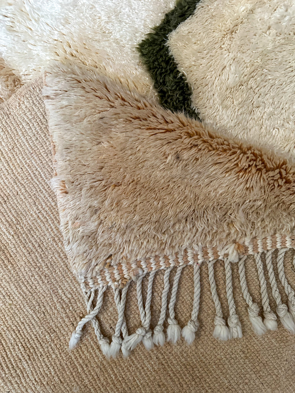The majority of these rugs come from the Middle Atlas and High Atlas Mountains. The local sheep in these colder climates have a thicker coat to sustain them during the winter months, which impacts the thickness of the wool, and in turn, contributes to the height of the pile.