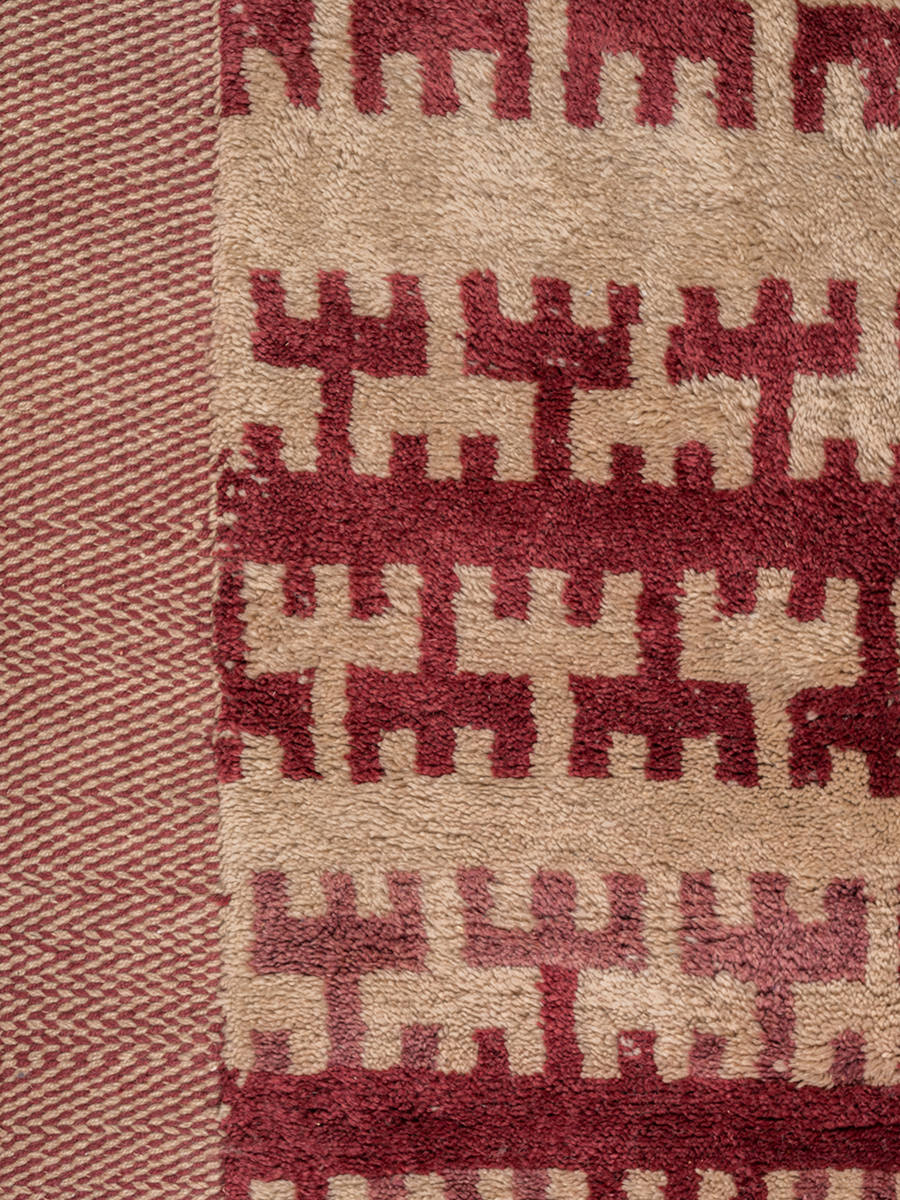 The majority of these rugs come from the Middle Atlas and High Atlas Mountains. The local sheep in these colder climates have a thicker coat to sustain them during the winter months, which impacts the thickness of the wool, and in turn, contributes to the height of the pile.