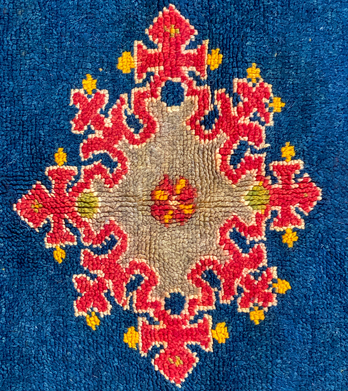 One telltale way to spot vintage rugs is by their odd shapes, as they may have been made to fit into old buildings, or specific spaces generations ago.