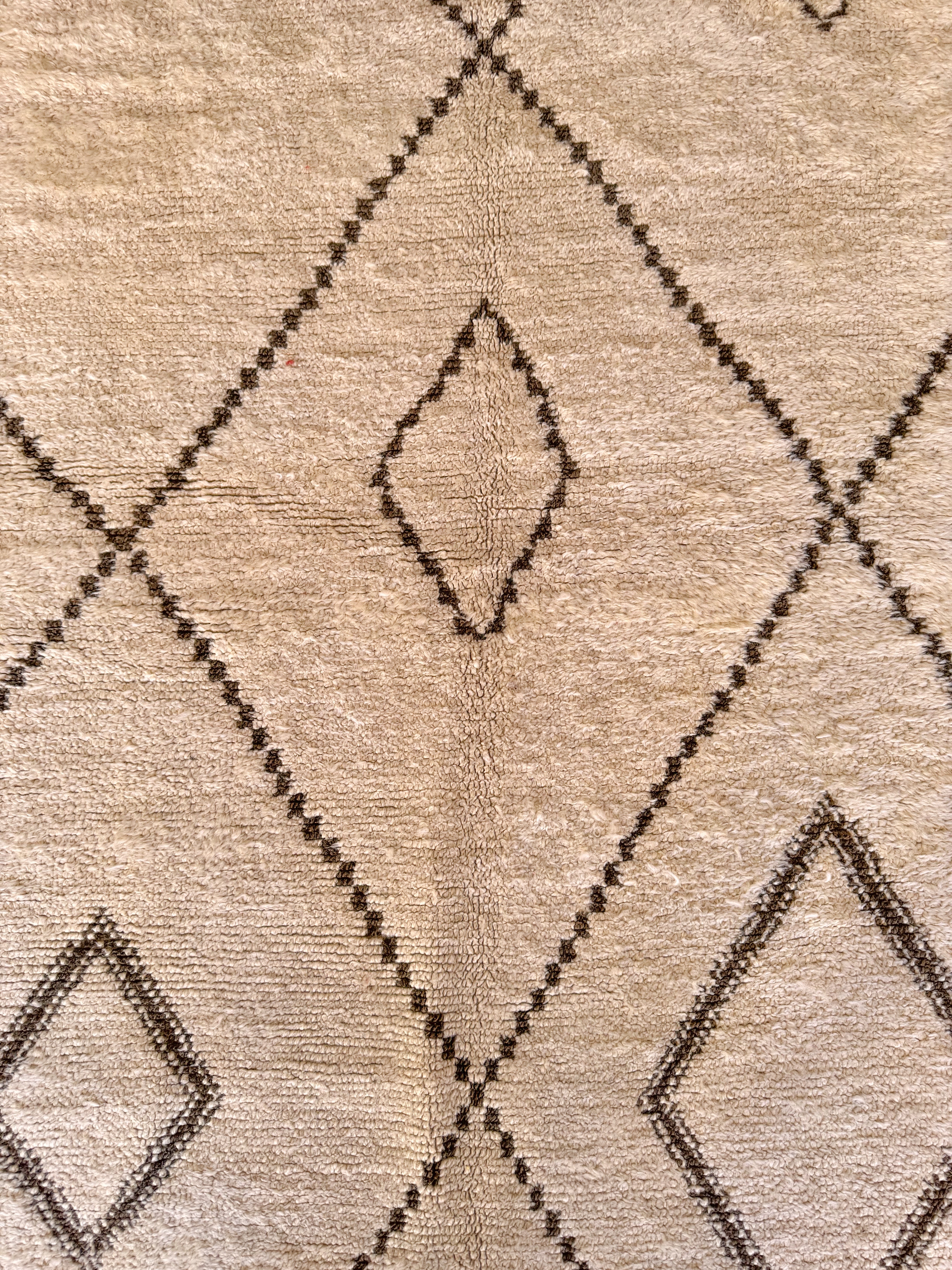A small independent Association of artisans who reside in Marmoucha, a Village located north of Morocco and sits just south of Fez, has a total of 10 weavers. Marmoucha sits in the region where the infamous Beni Ourain Tribe once lived. Hence, the traditional Medium to High Hand-Knot rug.