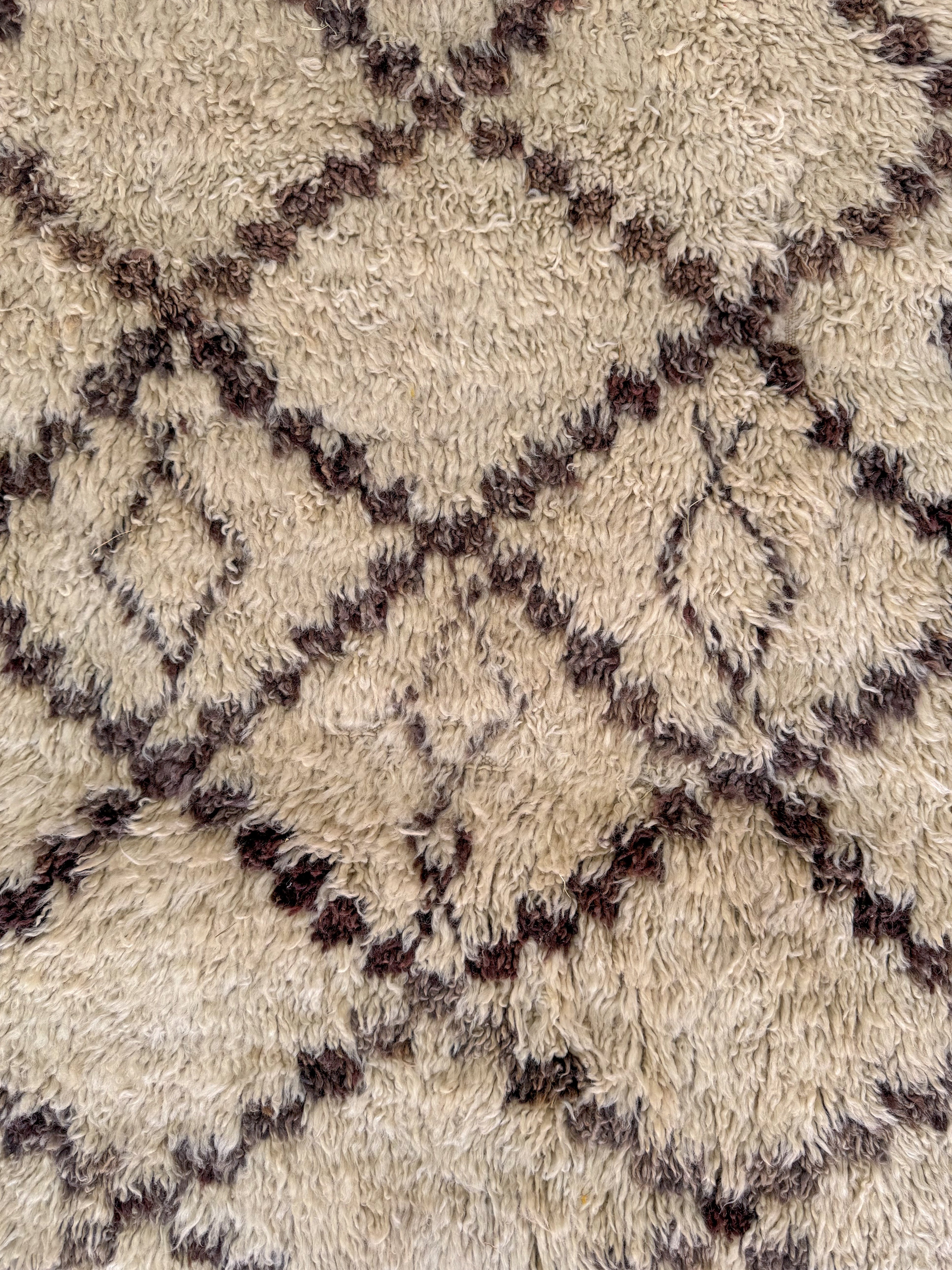 A small independent Association of artisans who reside in Marmoucha, a Village located north of Morocco and sits just south of Fez, has a total of 10 weavers. Marmoucha sits in the region where the infamous Beni Ourain Tribe once lived. Hence, the traditional Medium to High Hand-Knot rug.