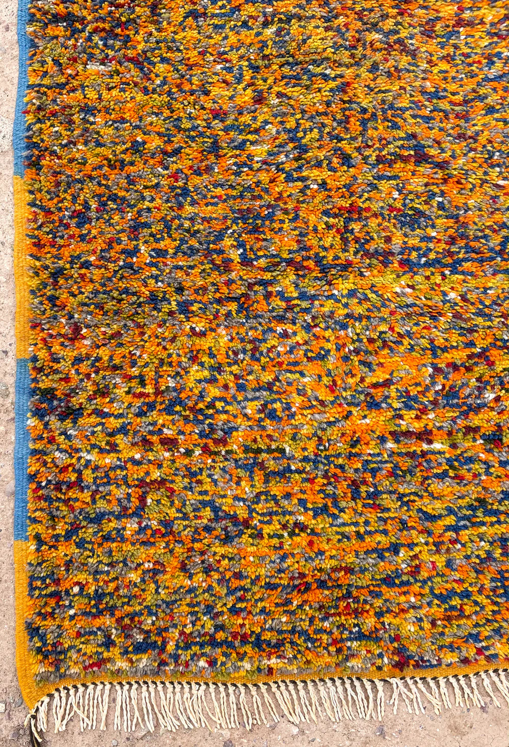 One significant difference in technique with this rug is the artisans usually pre-cut the wool prior to weaving on the loom, while the women in the north cut the wool after looping it around the loom.