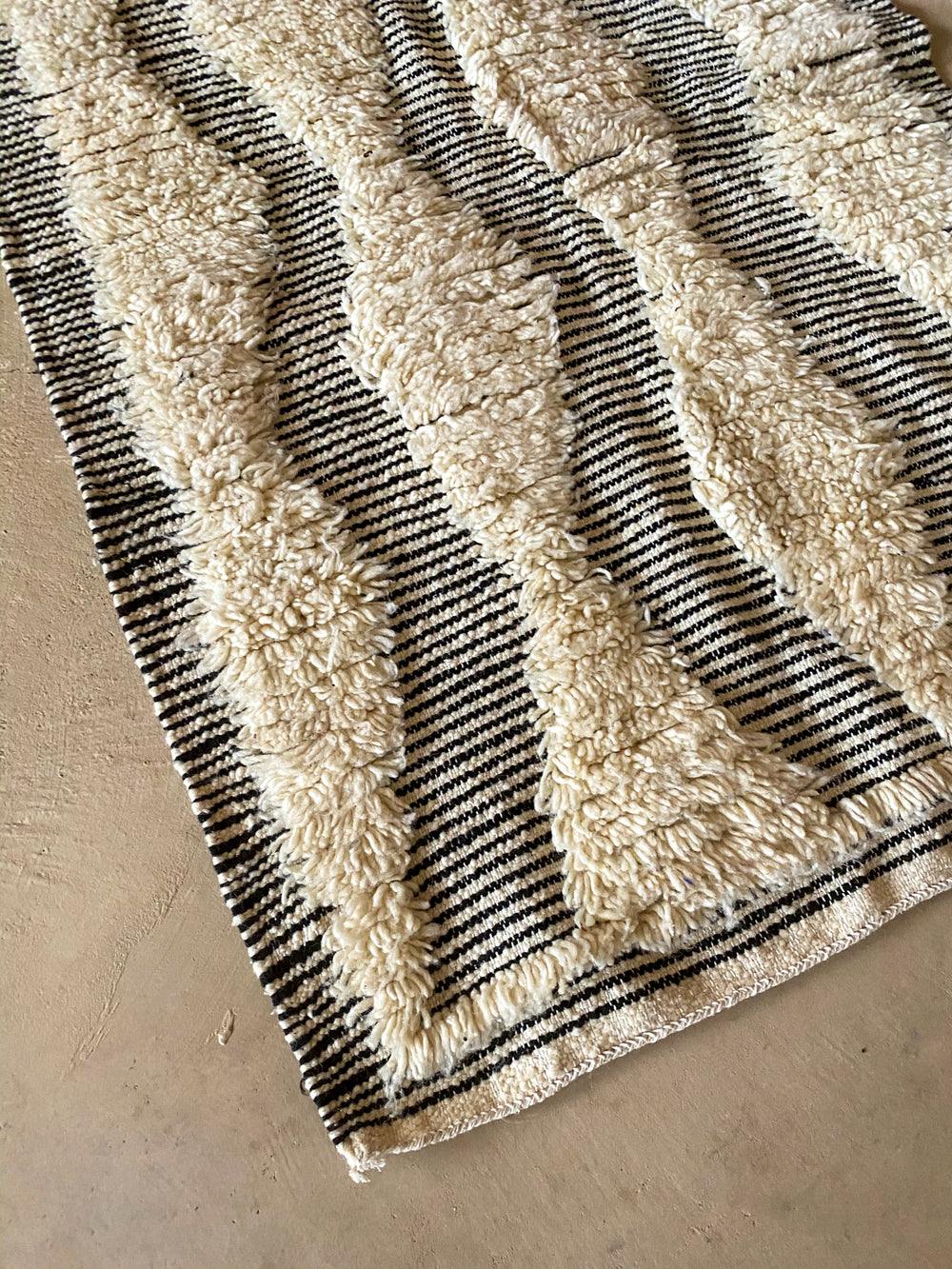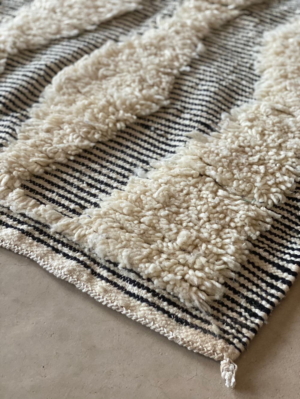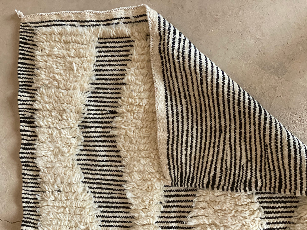 Mixed weaving techniques represent a new modern technique where the artisan will bring two techniques she specializes in. The combinations could be endless either combining two techniques such as Zanafi x Hand-Knot, or three Hand-Knot, Flatweave and Zanafi.