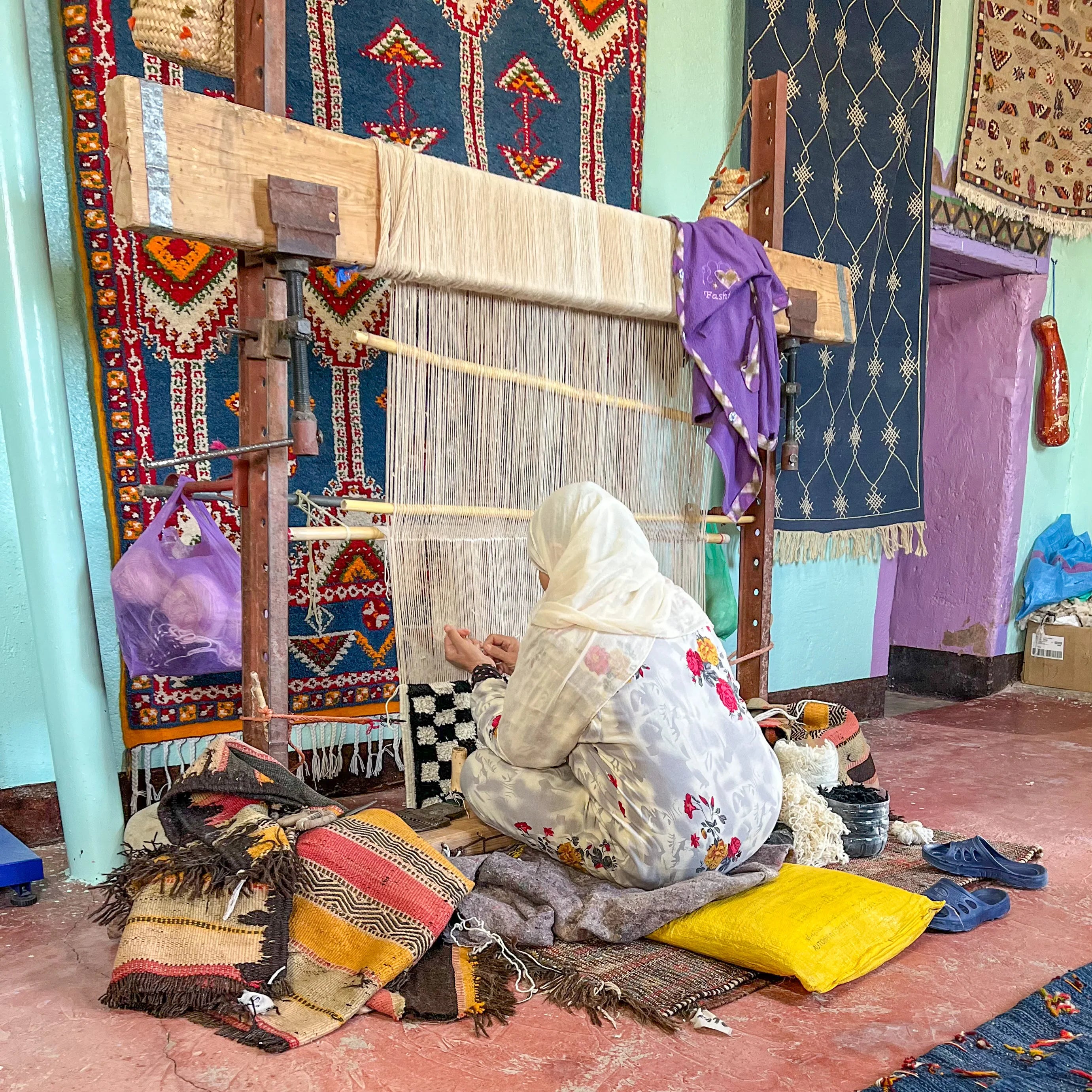One significant difference in technique with this rug is the artisans usually pre-cut the wool prior to weaving on the loom, while the women in the north cut the wool after looping it around the loom.