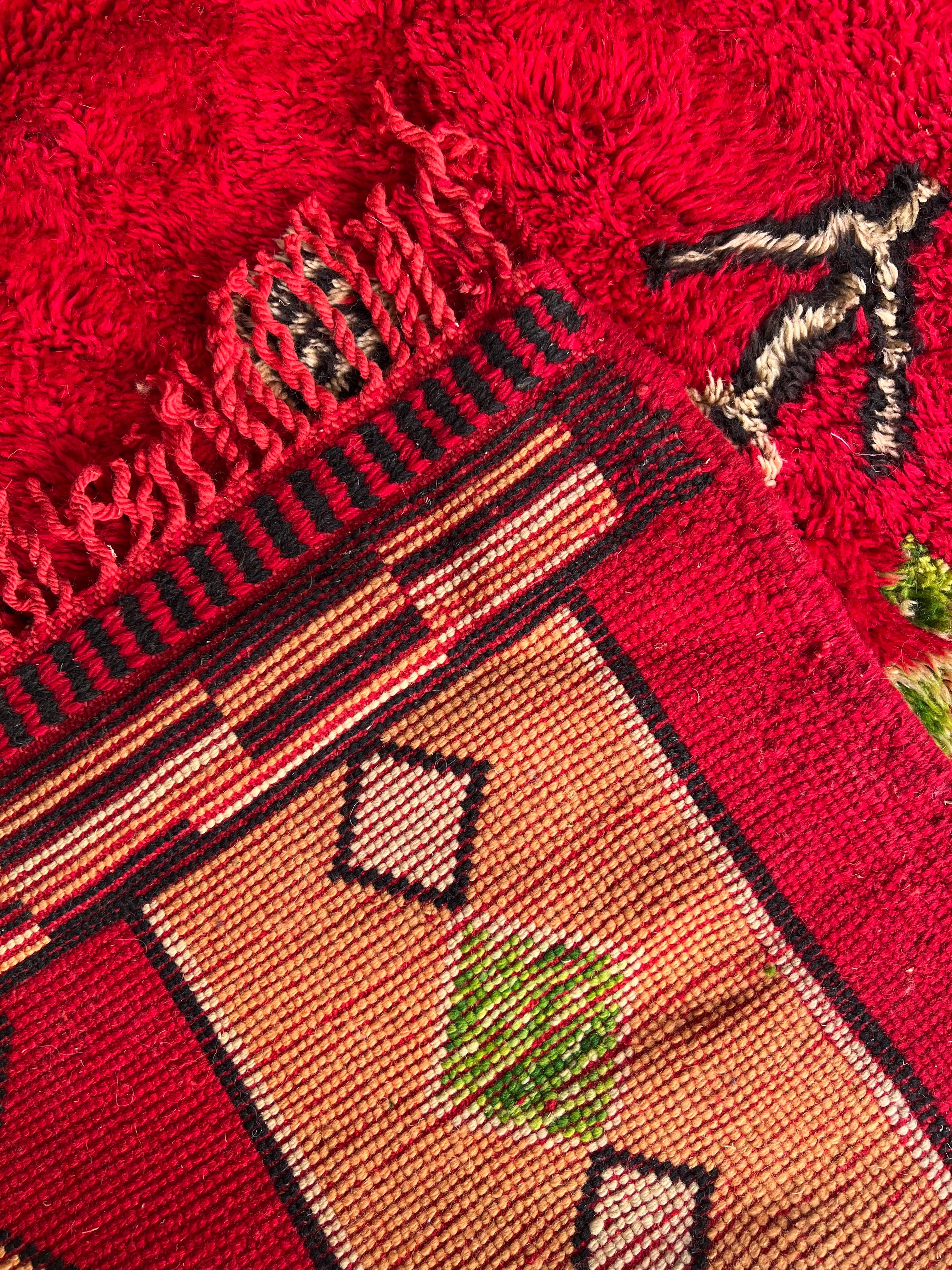 The majority of these rugs come from the Middle Atlas and High Atlas Mountains. The local sheep in these colder climates have a thicker coat to sustain them during the winter months, which impacts the thickness of the wool, and in turn, contributes to the height of the pile.