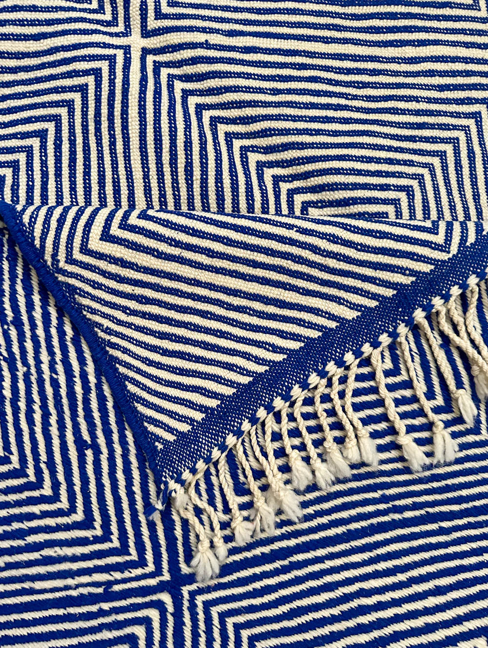 M'rirt's Optical Illusion Flatweave - Blue & White - Salam Hello