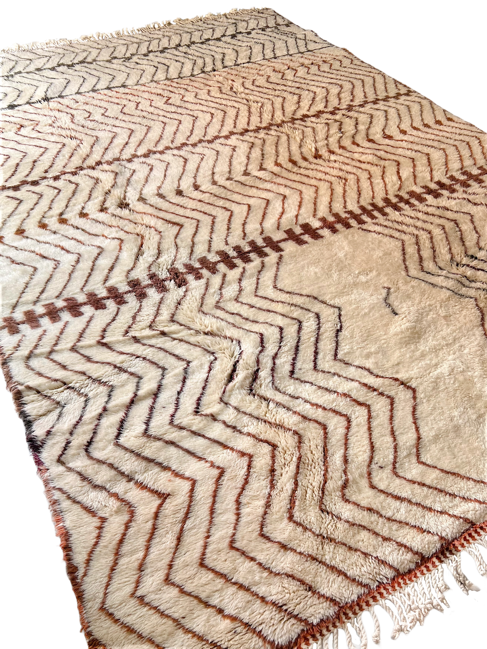 The majority of these rugs come from the Middle Atlas and High Atlas Mountains. The local sheep in these colder climates have a thicker coat to sustain them during the winter months, which impacts the thickness of the wool, and in turn, contributes to the height of the pile.
