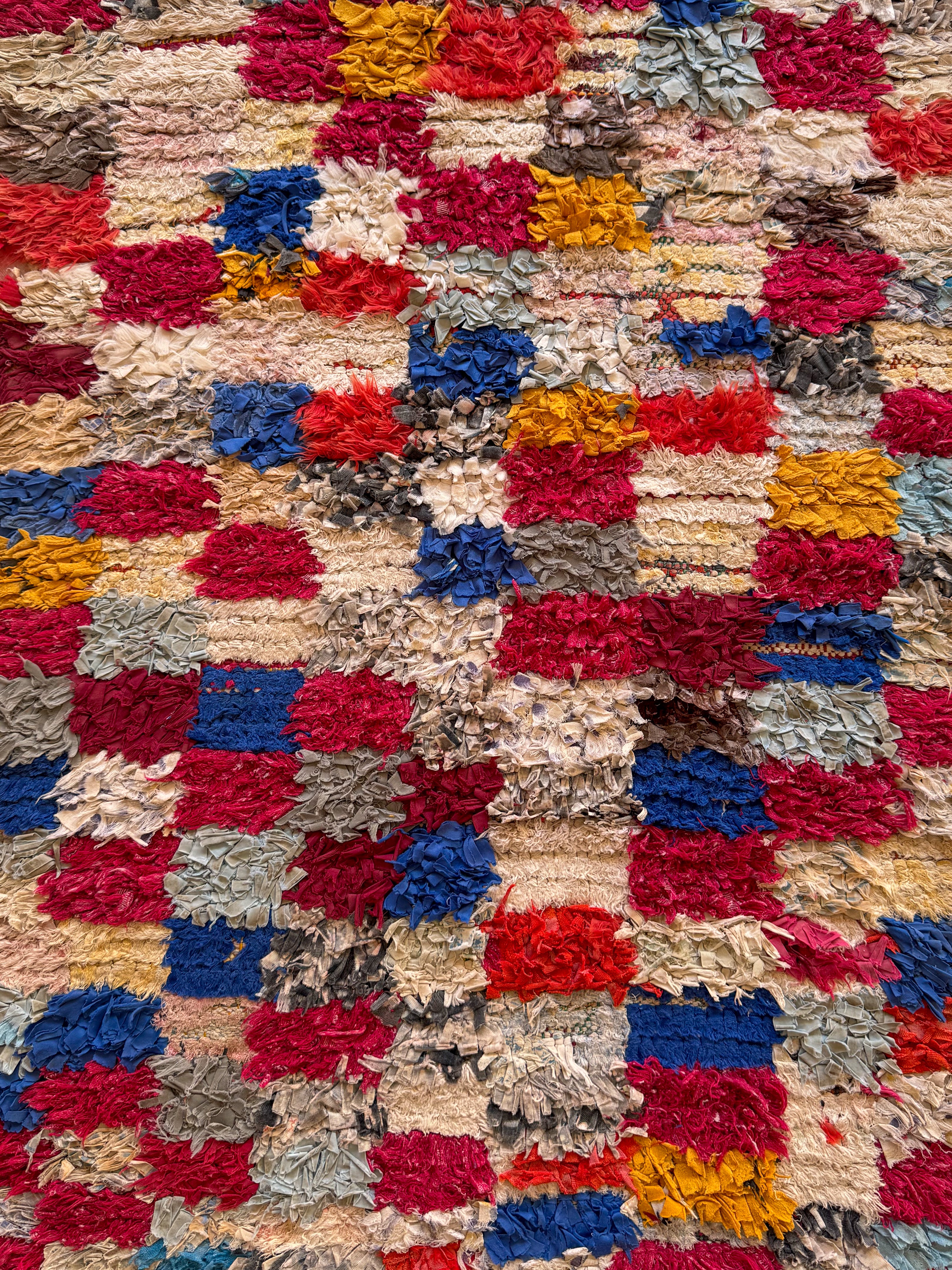 Oued Zem Checkered Boucherouite Runner - Primary Colors