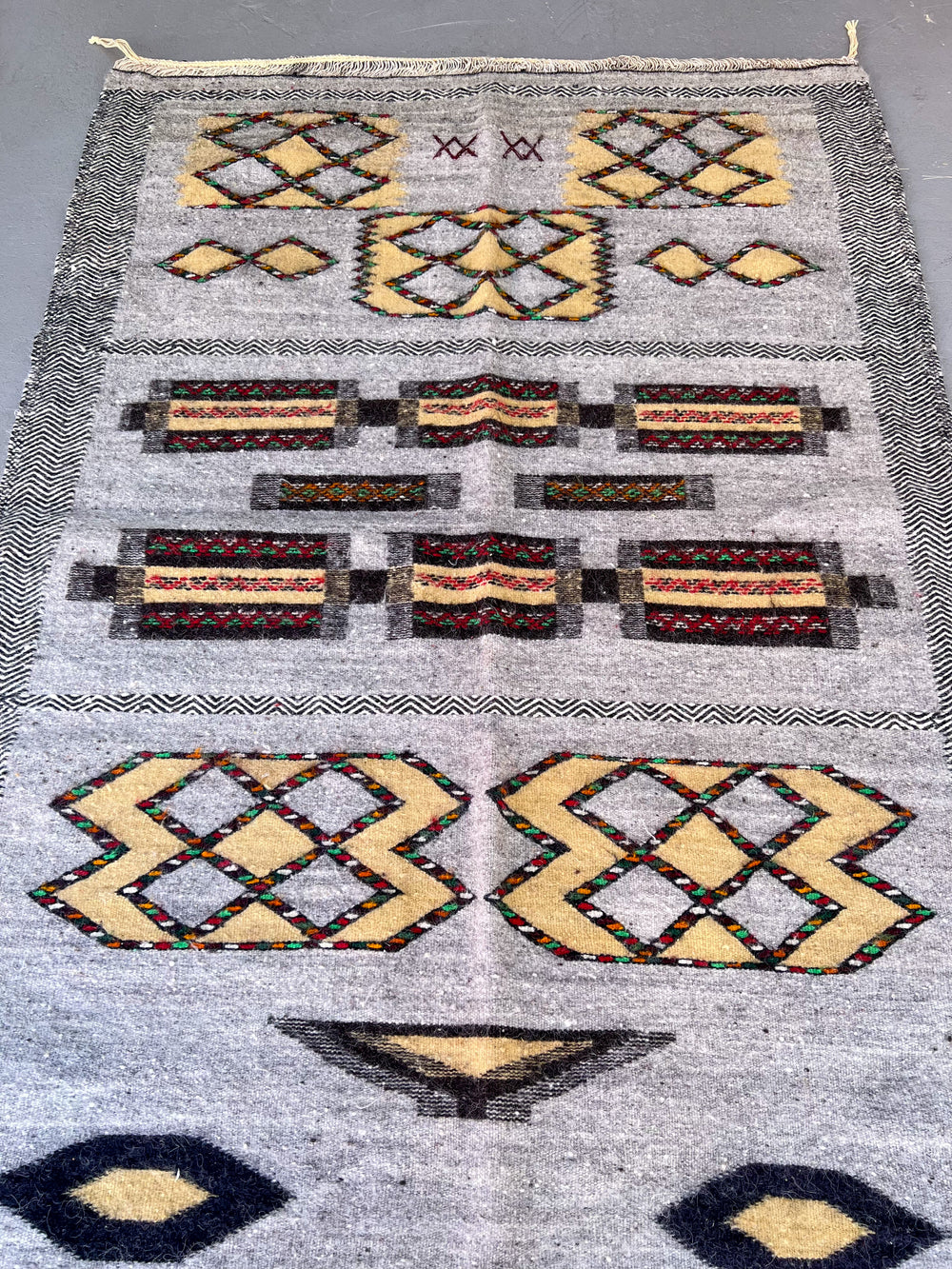 Flatweave rugs are thin, soft, strong and full of symbolism. They’re also called “Hanbel” or “Aknif” in Arabic. All of our Flatweave rugs are made in the south of Morocco, which produces the highest quality flatweaves.